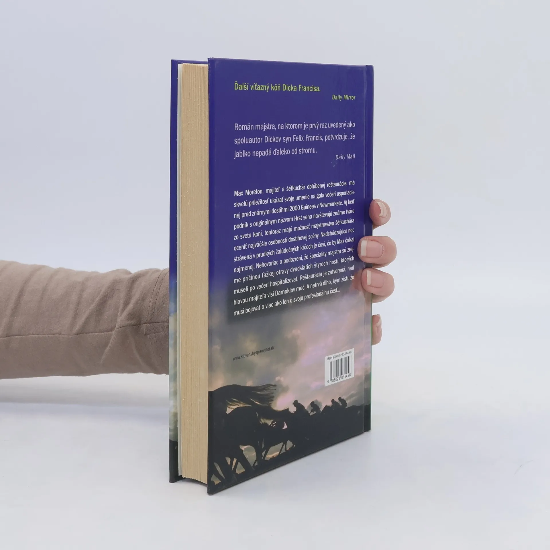 Román z dostihového prostredia napísal autor spolu so synom. Keď sa majiteľ obľúbenej dostihovej reštaurácie otrávi jedlom z vlastného podniku spolu s inými hosťami, ocitá sa v nepríjemnom položení. Ani obava zo straty živnosti však nie je taká hrozivá ako strach o svoj život...