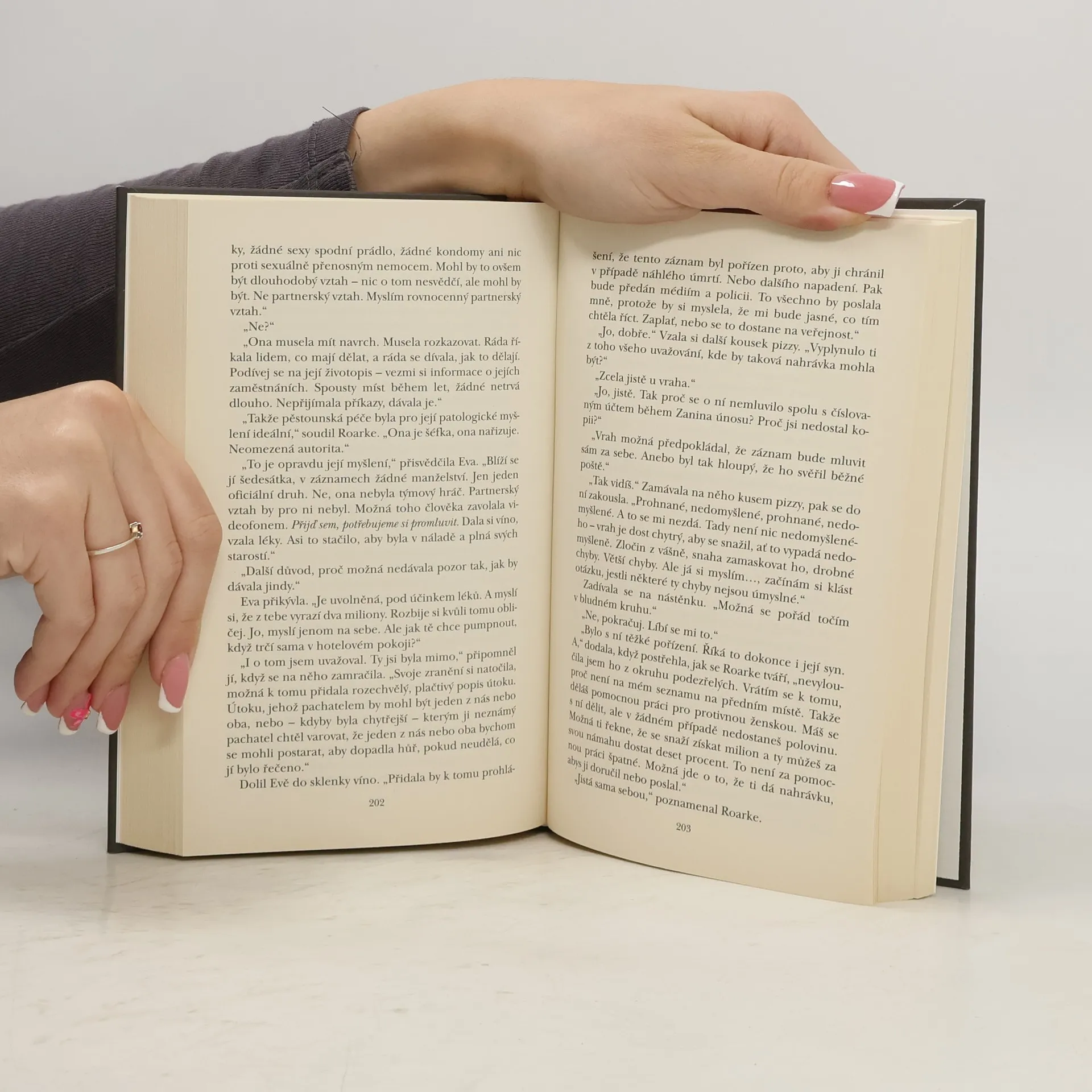 Eva Dallasová je výborná policistka, která se nelekne ani nejhorších zločinců a nejnebezpečnějších situací a dokáže čelit všemu, před co ji nelehký život vyšetřovatelky vražd postaví. Jen jedna věc ji děsí: vzpomínky na příšerné dětství, jaké by žádné dítě nemělo zažít. Snaží se s nimi sice bojovat, ale když se na policejní stanici, kde pracuje, náhle objeví Trudy Lombardová, jedna z jejích bývalých pěstounek, zasáhnou ji přímo s drtivou silou. Citové jizvy způsobené ledovými koupelemi, zamykáním ve tmě a drhnutím podlah kartáčkem na zuby se bolestivě otevřou. Evin manžel, sympatický a lehce výstřední miliardář Roarke, najde svou ženu zhroucenou, a to je něco, nač se rozhodně nemíní nečinně dívat. Brzy se také vyplní podezření, že lidská zrůda Trudy se neobjevila jenom tak. Roarke se nezná zuřivostí, když se vynoří u něj v kanceláři s vyděračským požadavkem dvou milionů dolarů. Místo peněz se však dočká něčeho úplně jiného: násilné smrti. Za stávajících okolností je ale zřejmé, na koho padne podezření… Eva se pokouší vraždu vyřešit, ale kromě obvyklých problémů, a ještě nějakých navíc, se musí potýkat i s vlastním pocitem, který do té doby nezažila. Trudy je jedinou obětí, s níž nedokáže mít soucit…