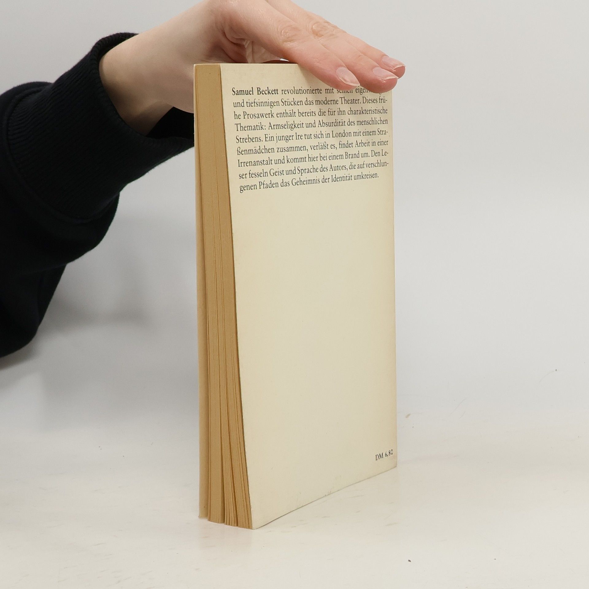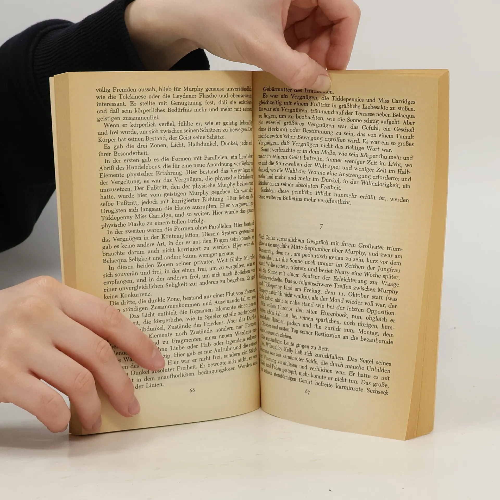 Bereits in seinem frühen Roman «Murphy» schreibt Samuel Beckett über das Thema, das ihn zeit seines Lebens beschäftigen sollte – die Absurdität des menschlichen Strebens. Ein junger Ire verbringt nackt, gefesselt und bewegungslos Stunden in einem Schaukelstuhl, um den Zwängen allen irdischen Seins in mystischer Versenkung zu entgehen. Die Liebe zu einer Prostituierten scheitert an seiner Weigerung, sich dem Diktat der alltäglichen Notwendigkeiten zu unterwerfen. Er verdingt sich als Hilfspfleger in einer Irrenanstalt, wo er sich mit den Insassen verbrüdert. «Murphy» bricht radikal mit den Gesetzmäßigkeiten und Sinnstiftungen des traditionellen Romans. Das Buch ist, wie es an einer Stelle heißt, «sorgfältig darauf zugeschnitten, den gebildeten Leser zu verderben».