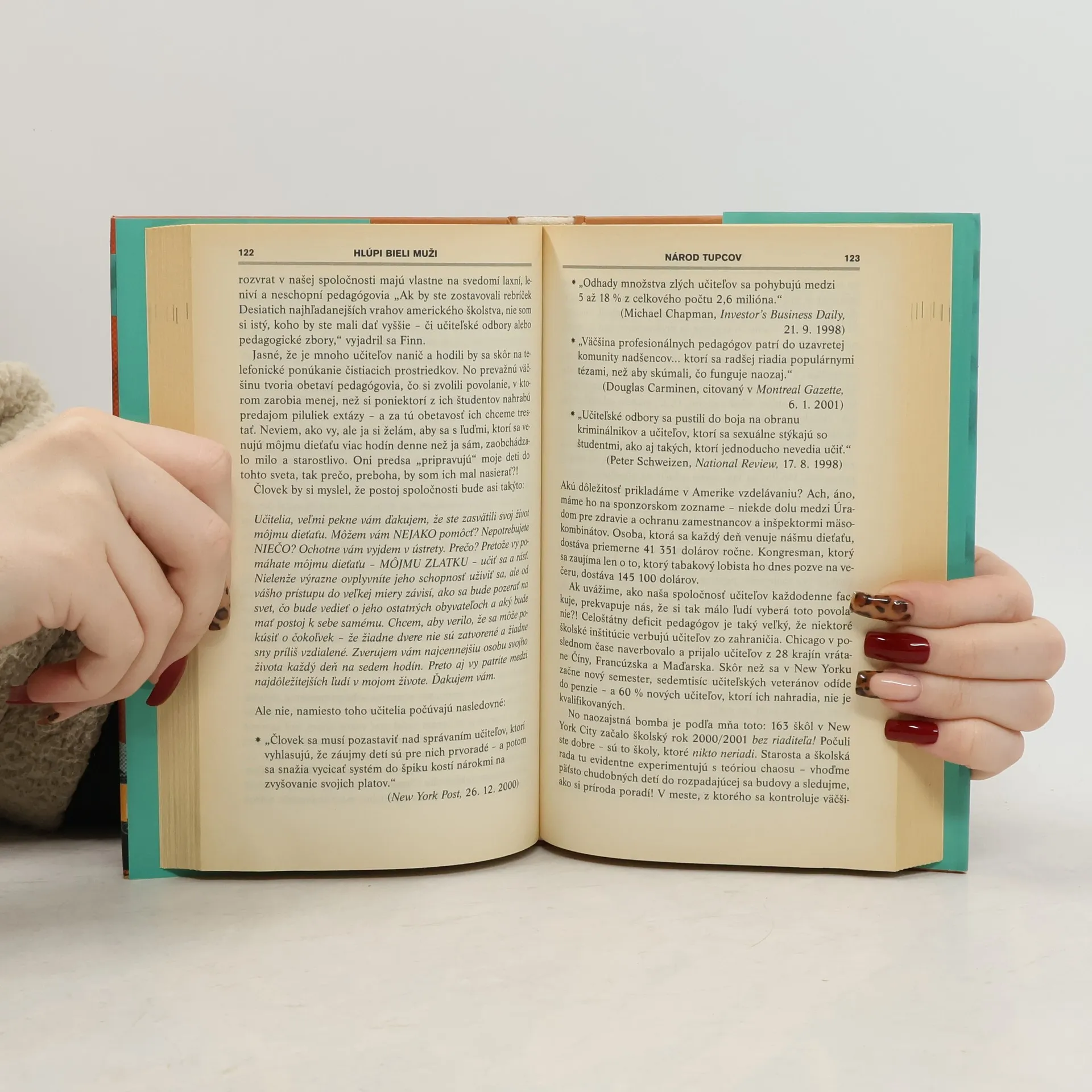 Kniha je humornou, ironickou a čiernou výpravou americkými dejinami a súčasnou politikou. Autor kritizuje všetky americké vlády ako populistické a klamárske, pričom sám sa dopúšťa niektorých skreslení a neprofesionálnych dedukcií. Napriek tomu ponúka zaujímavý pohľad na americkú politiku a odhaľuje mnohé úvahy a údaje bez zastierania ich pozadia. Michael Moore hodnotí nové storočie a lobistickú skupinu hlúpych bielych mužov, pričom kniha slúži ako jeho manifest o trestných činoch a priemernosti. Vyzýva OSN, aby zvrhla Bushovcov, a žiada Afroameričanov, aby nad nepriateľskými obchodmi zavesili tabule LEN BELOSI. Jeho ostrá kritika prezidenta Georgea W. Busha, ktorého označuje za zlodeja a uzurpátora, je prepojená s jeho názorom na americkú politickú scénu. Bill Clinton je označený za jedného z najlepších republikánskych prezidentov, pričom Moore poukazuje na to, že Američania sa v deväťdesiatych rokoch zaujímali len o povrchné škandály. Kritizuje korporácie, ktoré ovládajú krajinu a bránia chudobným v prístupe k bohatstvu. Podľa prieskumov je 60 percent Američanov nespokojných so svojou vlasťou, kde vládnu peniaze a nečestné súdy. Ak vás zaujíma, čo trápi Ameriku, táto kniha je pre vás.