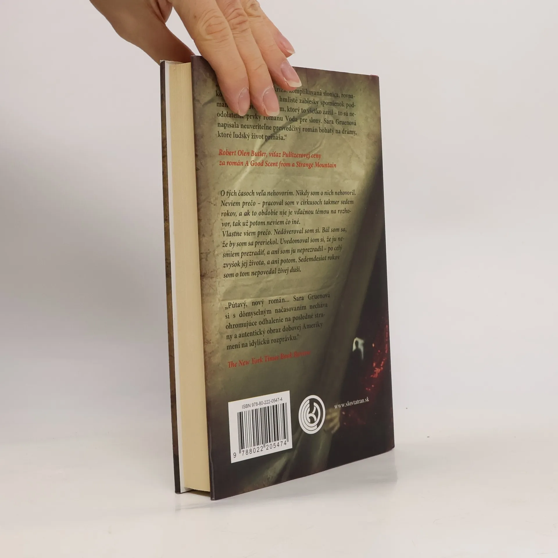 V mysli deväťdesiatnika Jacoba Jankowského stále žijú spomienky na jeho mladé ja, ktoré sa ocitlo v ošumelom vlaku cirkusu bratov Benziniovcov. Tento svet plný čudákov, klaunov a vášne je pre Jacoba súčasne spasením a peklom. Po strate rodičov a bez peňazí sa dostáva do „lode bláznov“ v čase hospodárskej krízy, kde každý zamestnanec je rád, že má prácu. Marlena, hviezda jazdeckého čísla, sa ocitla v cirkuse po tom, čo sa zamilovala do nesprávneho muža, príťažlivého, no temného cirkusového majstra. Do tohto prostredia patrí aj Rosie, slonica, ktorá mala zachrániť cirkus, no nedokáže pochopiť jednoduché pokyny. Nezvyčajný trojlístok Jacoba, Marleny a Rosie spája láska a dôvera, vďaka ktorým si udržia nádej na prežitie. Tento prekvapujúci a dojímavý román ponúka strhujúci príbeh s jedinečnými postavami, ktoré vo vás ostanú žiť aj po prečítaní poslednej strany. Prenesie vás do sveta zázrakov tak presvedčivo, že takmer pocítite jeho vôňu.