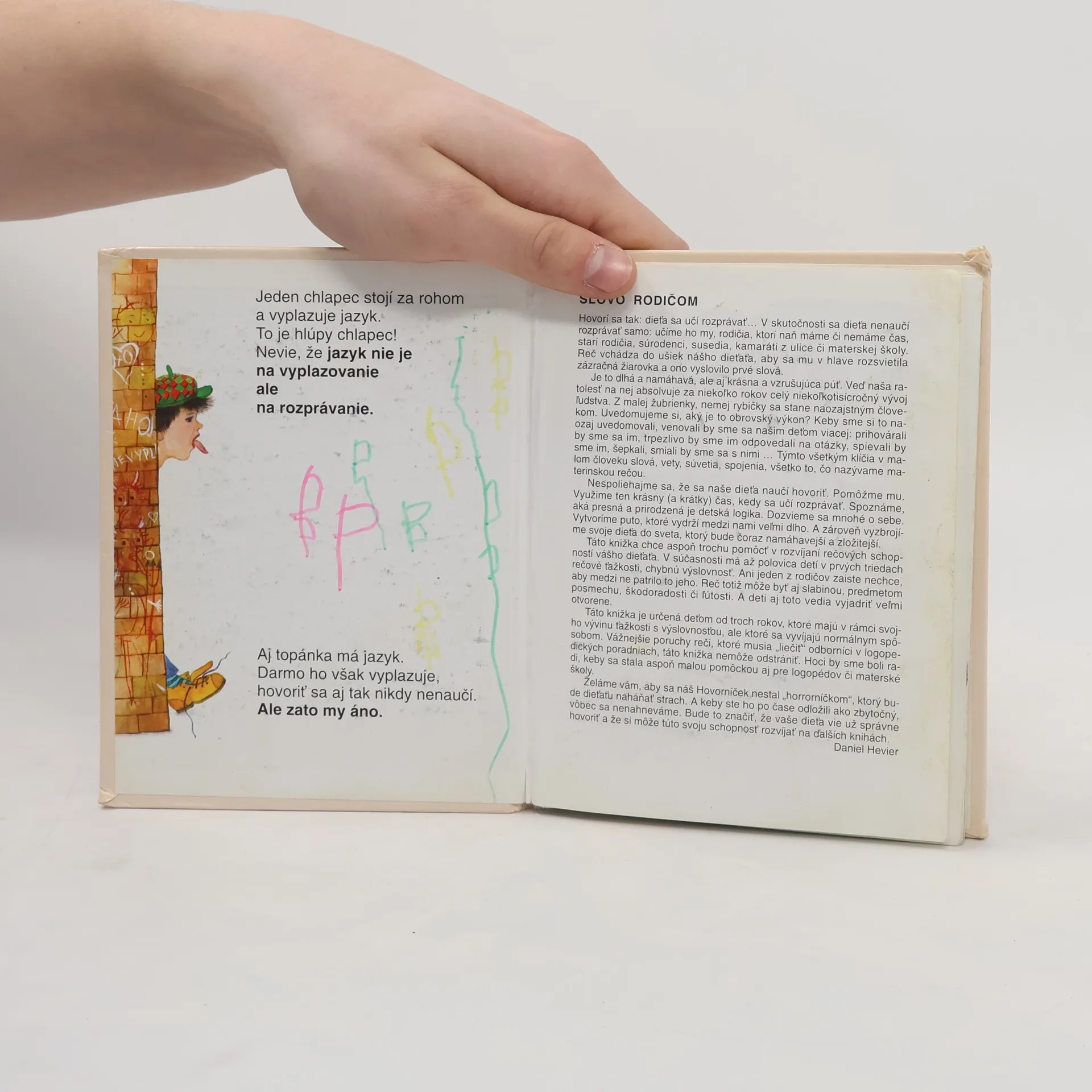 Po štrnástich rokoch vychádza vynikajúca kniha Daniela Heviera a maliarky Oľgy Bajusovej na pomoc v rozvíjaní rečových schopností malých detí. Hovorníček je hravá obrázková knižka pre každý detský jazýček. Vie sa hrať na riekanky, rečňovanky, hádanky i pesničky, vie rapotať, cinkotať, trilkovať, štebotať, vie sa tešiť spolu s deťmi zo všetkých zvukov, ktorými sa im svet prihovára. Vie však i pomáhať nepoddajnému detskému jazýčku pri osvojovaní si krásnej materinskej reči, aby sa dieťaťu rozviazal skôr, než začne chodiť do školy. Na jej vytvorení, rozvíjajúcej nielen reč, ale i myslenie najmenších detí, sa podieľali logopédi, psychológovia i jazykovedci.