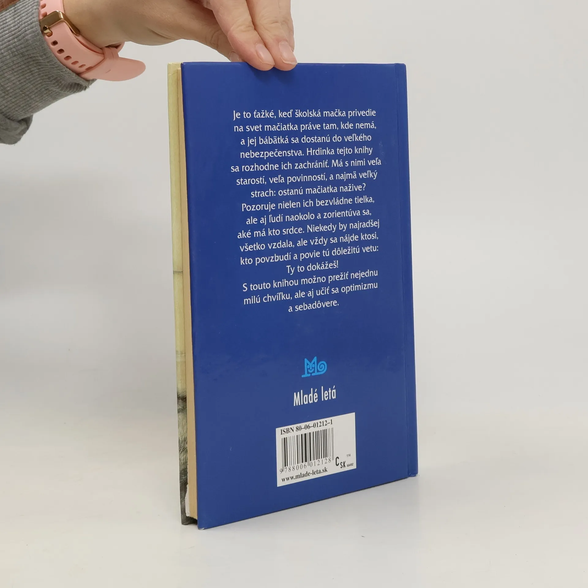 Je to ťažké, keď školská mačka privedie na svet mačiatka práve tam, kde nemá, a jej bábätká sa dostanú do veľkého nebezpečenstva. Hrdinka tejto knihy sa rozhodne ich zachrániť. Má s nimi veľa starostí, veľa povinností, a najmä veľký strach: ostanú mačiatka nažive ? Pozoruje nielen ich bezvládne tielka, ale aj ľudí naokolo a zorientúva sa, aké má kto srdce. Niekedy by najradšej všetko vzdala, ale vždy sa nájde ktosi, kto povzbudí a povie tú dôležitú vetu: Ty to dokážeš ! S touto knihou možno prežiť nejednu milú chvíľku, ale aj učiť sa optimizmu a sebadôvere. Prvé vydanie.