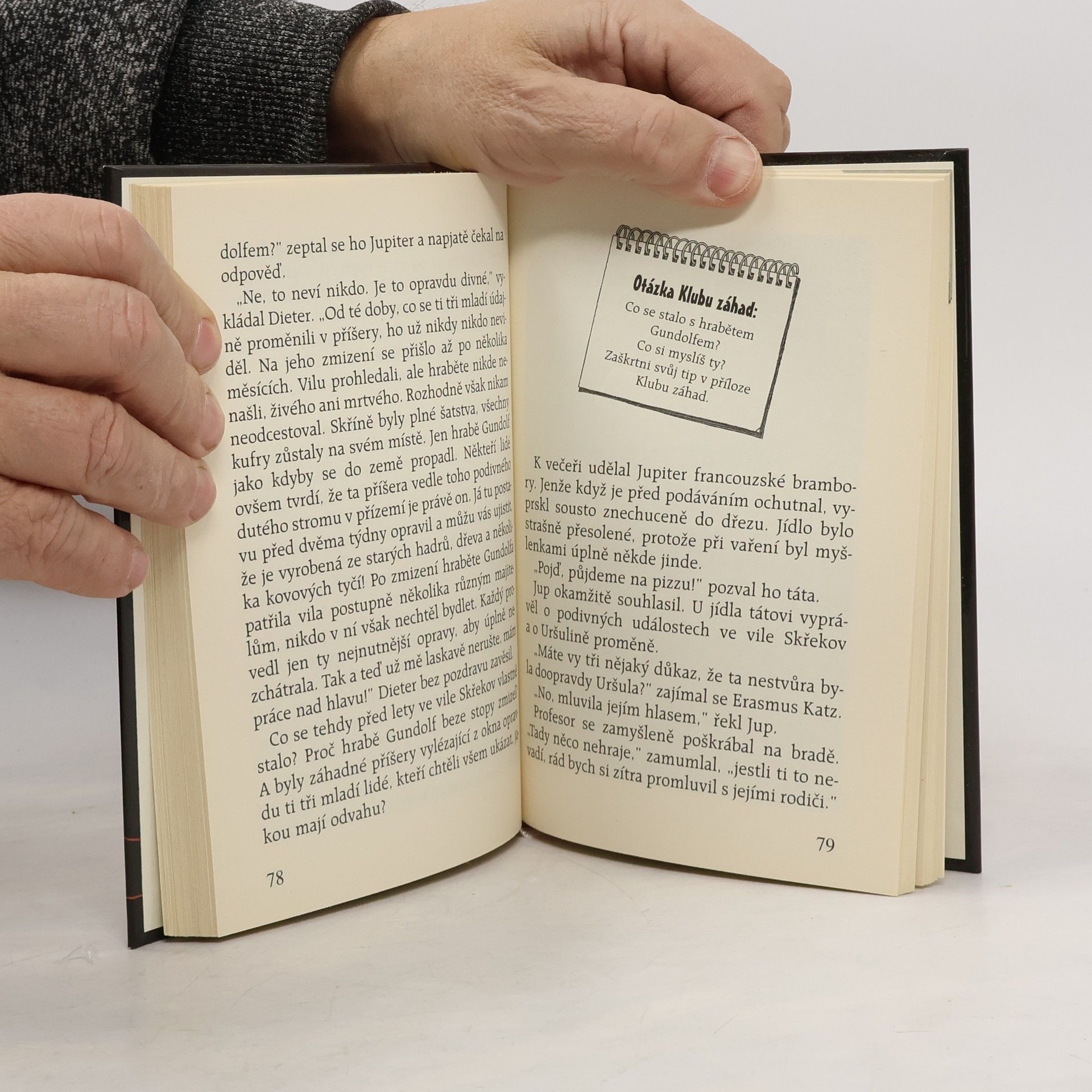 Staň se členem Klubu záhad! Pomocí superlupy objasni s ostatními členy strašlivé tajemství vily hraběte Gundolfa. Rohaté bytosti se žhnoucíma očima se tu plíží chodbami, tajemné zrcadlo pohlcuje obličeje, kostnaté ruce se lačně natahují po návštěvnících a tři prázdné rakve jsou již připraveny... V Klubové příloze s dalšími informacemi o případu také zjistíš, jak jsi obstál ty sám.