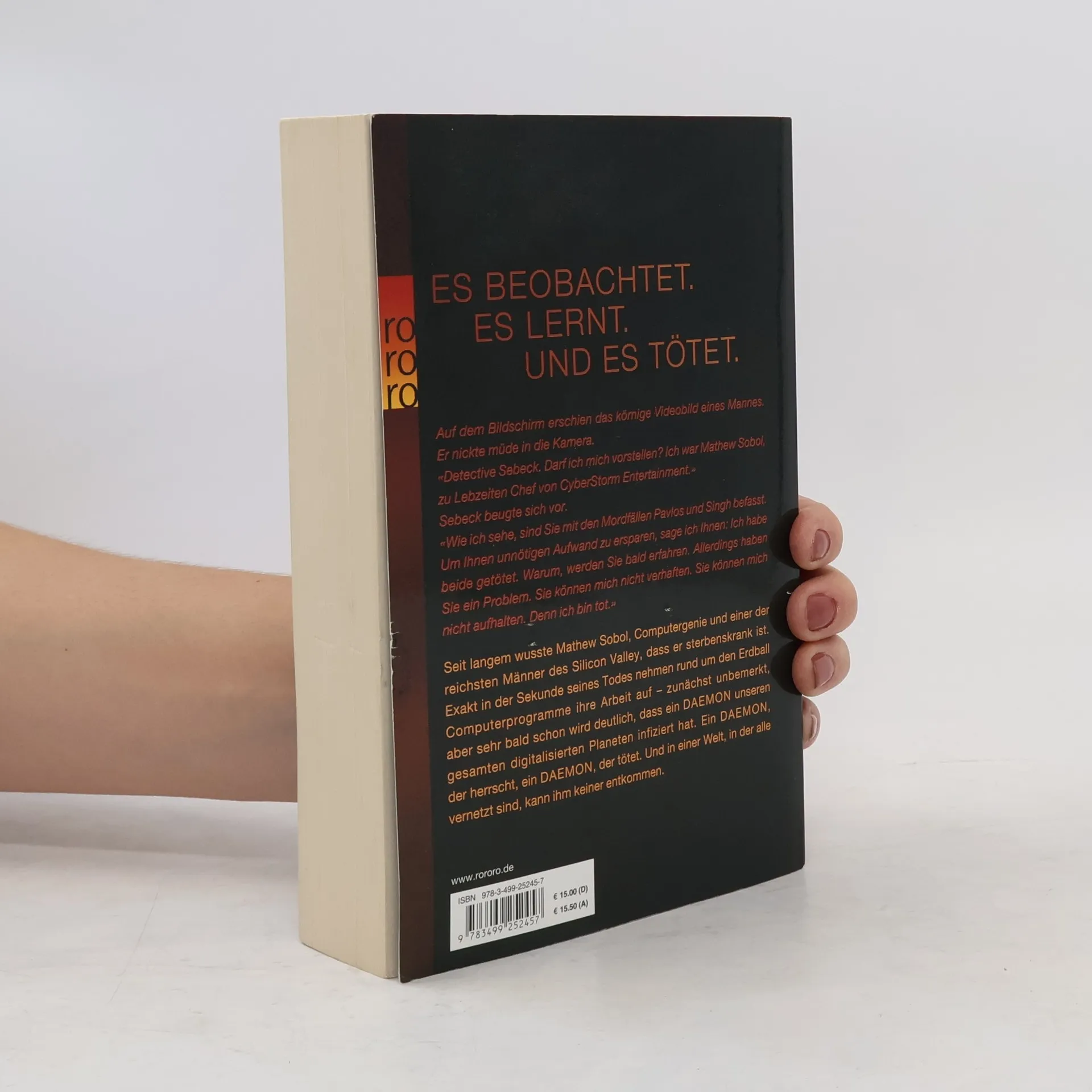 Es beobachtet. Es lernt. Und es tötet. Auf dem Bildschirm erschien das körnige Videobild eines Mannes. Er nickte müde in die Kamera. «Detective Sebeck. Darf ich mich vorstellen? Ich war Matthew Sobol, zu Lebzeiten Chef von CyberStorm Entertainment.» Sebeck beugte sich vor. «Wie ich sehe, sind Sie mit den Mordfällen Pavlos und Singh befasst. Um Ihnen unnötigen Aufwand zu ersparen, sage ich Ihnen: Ich habe beide getötet. Warum, werden Sie bald erfahren. Allerdings haben Sie ein Problem. Sie können mich nicht verhaften. Sie können mich nicht aufhalten. Denn ich bin tot.» Seit langem wusste Matthew Sobol, Computergenie und einer der reichsten Männer des Silicon Valley, dass er sterbenskrank ist. Exakt in der Sekunde seines Todes nehmen rund um den Erdball Computerprogramme ihre Arbeit auf – zunächst unbemerkt, aber sehr bald schon wird deutlich, dass ein DAEMON unseren gesamten digitalisierten Planeten infiziert hat. Ein DAEMON, der herrscht, ein DAEMON, der tötet. Und in einer Welt, in der alle vernetzt sind, kann ihm keiner entkommen.