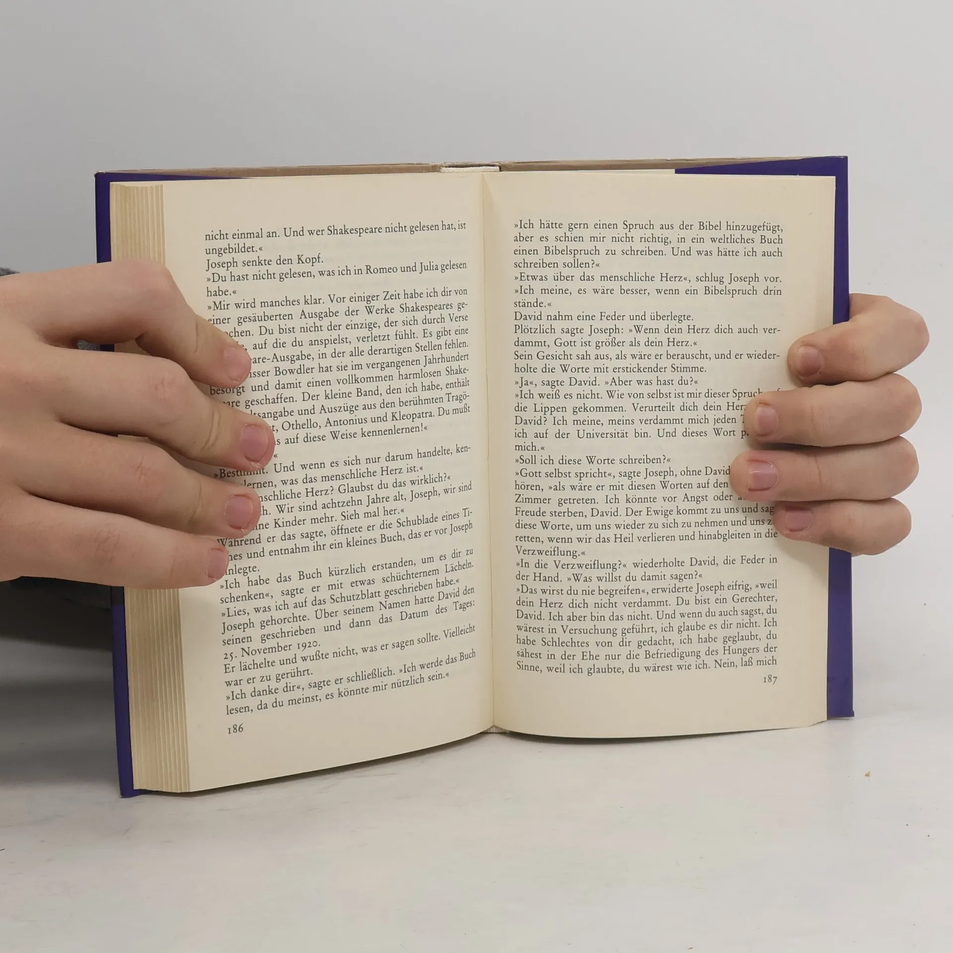 Eine College-Geschichte mit fatalem Ausgang, weil der fromme Joseph Day sich vor der Liebe fürchtet. »Schüchtern folgte er ihr in das Zimmer, wo er die Möbel kaum wiedererkannte, derart waren sie mit Kleidern, Hüten, Schachteln bedeckt. Eine weißseidene Bluse öffnete auf dem Schaukelstuhl mit einer Schamlosigkeit die Ärmel, und auf dem ungemachten Bett lagen fleischfarbene Strümpfe und ein pfirsichrosa Nachthemd übereinander. Entsetzt wandte er sich ab.« Joseph Day, ein unberührter Jüngling »aus den Bergen«, studiert 1920 in Virginia Griechisch, Geschichte, englische Literatur und Bibelexegese. Er ist sehr religiös und von schlichtem Gemüt. Mit seinem religiösen Eifer und dem feurig-roten Haarschopf sticht er seinen Kommilitonen in die Augen. Sie wollen ihn mit einem Streich kurieren: Moira, eine sinnliche und verführerische junge Frau, erklärt sich bereit, dabei mitzuspielen. Aus dem Spiel wird jedoch Ernst.