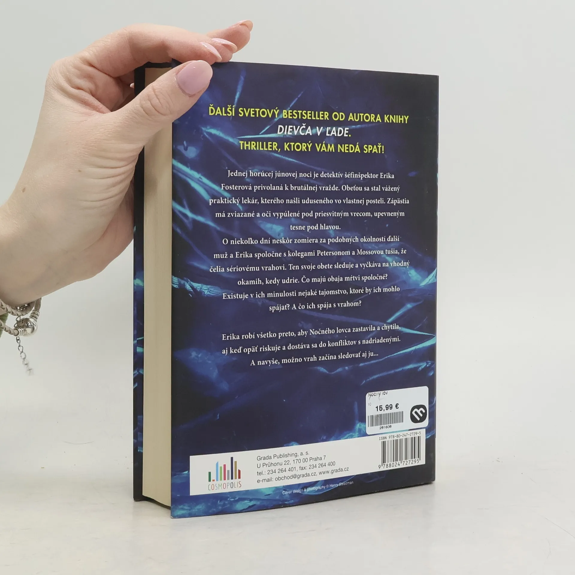 Jednej horúcej júnovej noci je detektív šéfinšpektora Erika Fosterová privolaná k brutálnej vražde. Obeť, vážený praktický lekár, je nájdený vo svojej posteli udusený. Zápästia má zviazané a oči vypúlené pod priesvitným vreckom, upevneným tesne pod hlavou. O niekoľko dní neskôr zomiera za podobných okolností ďalší muž a Erika spoločne s kolegami Petersonom a Mossovou tušia, že čelia sériovému vrahovi. Ten svoje obete sleduje a vyčkáva na vhodný okamih, kedy udrie. Čo majú obaja mŕtvi spoločné? Existuje v ich minulosti nejaké tajomstvo, ktoré by ich mohlospájať? A čo ich spája s vrahom? Erika robí všetko preto, aby Nočného lovca zastavila a chytila, aj keď opäť riskuje a dostáva sa do konfliktov s nadriadenými. A navyše, možno vrah začína sledovať aj ju...