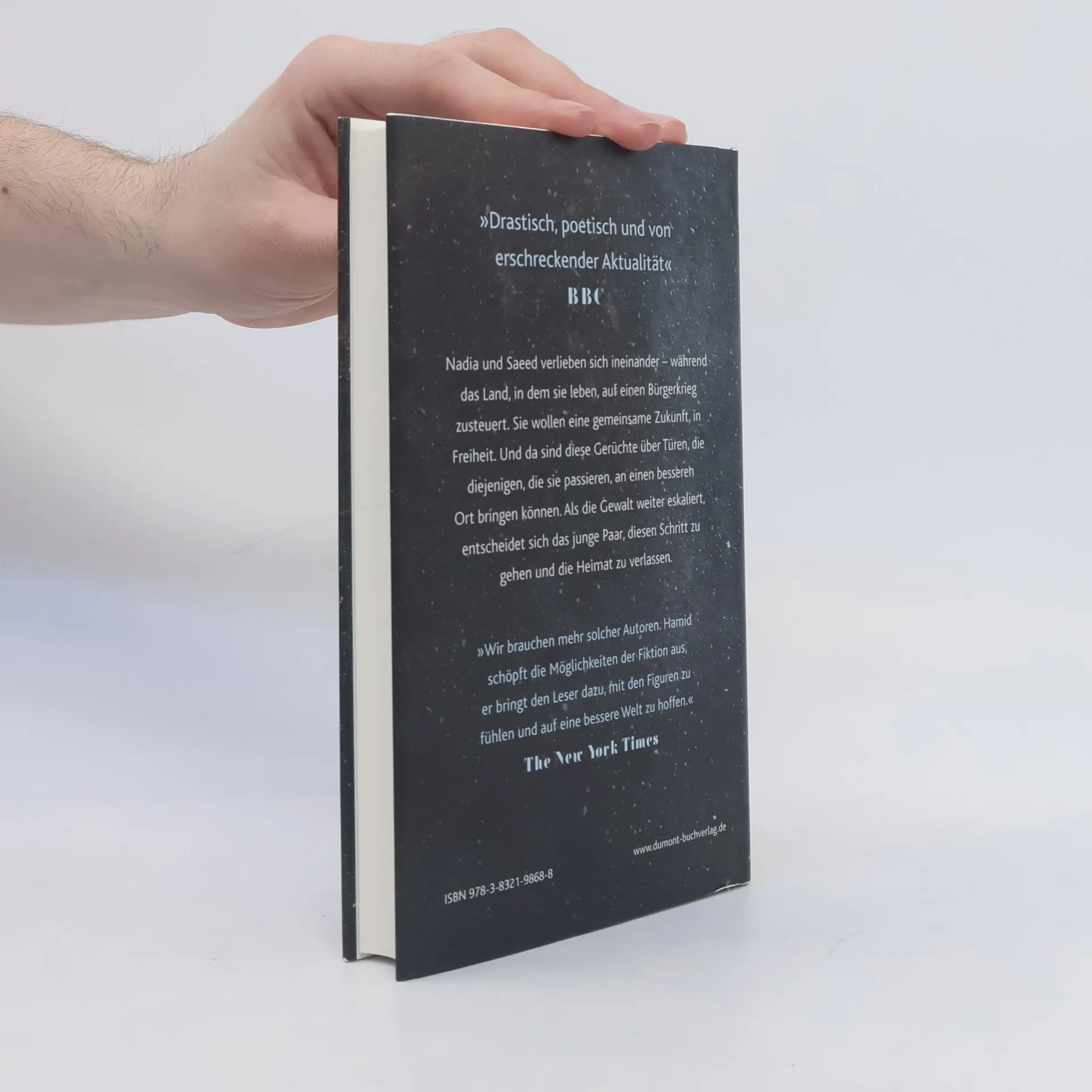 In einer Welt, die aus den Fugen geraten ist, in einem muslimisch geprägten Land, das am Rande eines Bürgerkriegs steht, in einer Stadt, die namenlos bleibt, lernen sie sich kennen: Nadia und Saeed. Sie hat mit ihrer Familie gebrochen, fährt Motorrad, lebt säkular und trägt ihr dunkles Gewand nur als Schutz vor den Zudringlichkeiten fremder Männer. Er wohnt noch bei seinen Eltern, ist eher schüchtern und nimmt die Ausübung seiner Religion sehr ernst. Doch während die Stadt um sie herum in Flammen aufgeht, sich Anschläge häufen und die Sicherheitslage immer prekärer wird, finden die beiden zusammen. Sie wollen eine gemeinsame Zukunft, in Freiheit. Und da sind diese Gerüchte über Türen, die diejenigen, die sie passieren, an ferne Orte bringen können. Doch den Weg durch diese Türen muss man sich mit viel Geld erkaufen. Als die Gewalt weiter eskaliert, entscheiden sich Nadia und Saeed, diesen Schritt zu gehen. Sie lassen ihr Land und ihr altes Leben zurück ... ›Exit West‹ ist ein überaus berührender Roman, der sich mit den zentralen Themen unserer Zeit beschäftigt: Flucht und Migration. Mohsin Hamid beweist, dass Literatur poetisch und zugleich politisch sein kann. Mit diesem »fesselnden Roman« (New York Times) stand Mohsin Hamid auf der Shortlist des Man-Booker-Preises 2017.