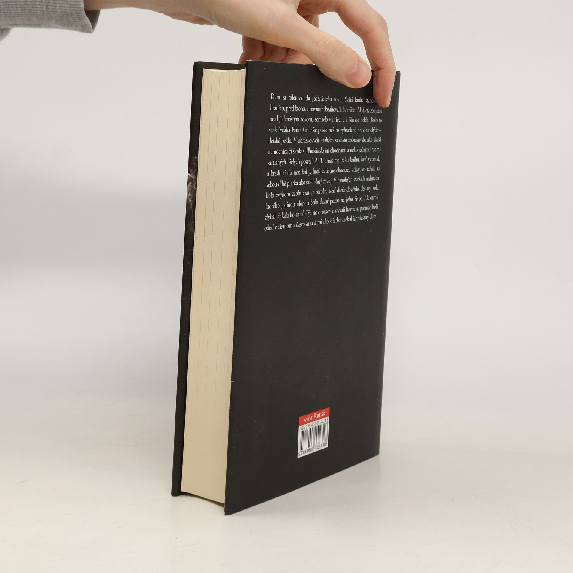 Ľudia s nečistými myšlienkami tu boli označení dymom, ktorý im unikal z tela a bol znakom ich úpadku. Šľachta nevypúšťala dym, bol to dôkaz ich cnosti a práva vládnuť, zatiaľ čo nižšie spoločenské vrstvy sa utápali v hriechu a sadziach. Celkom čudné, no celkom skutočné Anglicko. Elitná internátna škola, kde vychovávajú synov zámožných ľudí, aby podľa práva prvorodených prevzali moc. Učitelia so záhadnými prepojeniami na súperiace politické frakcie na najvyšších vládnych úrovniach. Traja mladí ľudia, ktorí zistia, že všetko, čo ich učia, je lož – toto poznanie ich môže stáť život. Majestátny kaštieľ, kde v podkrovných izbách a v skrytom laboratóriu číhajú tajomstvá. Milostný trojuholník. Zúfalé prenasledovanie. Revolucionári a tajná polícia. Náboženskí fanatici a bezcitní vedci. Vražda. Londýn plný nebezpečenstiev a divov. Strastiplný vzťah medzi matkou a dcérou a matkou a synom. Nečakaní zloduchovia a nečakaní hrdinovia. Chladný rozum a vášeň. Bohatí a chudobní. Správne a nesprávne, hoci nie je jasné, čo je čo. Toto je svet Dymu, majstrovské rozprávačské dielo, dickensovsky spletitý príbeh vyznačujúci sa urputnou silou predstavivosti, bohatou atmosférou a napätím.
