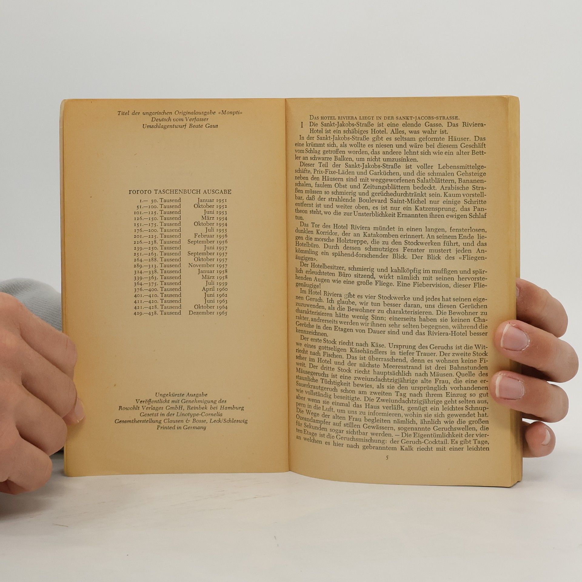 Monpti ist der Kosename, den die kleine Pariserin Anne-Claire dem jungen ungarischen Studenten gibt, dem sie auf rührende Weise anhängt und der sie auch mit ihren kleinen Lügen und ihrer reinen Seele glühend liebt. Monpti ist dem Zauber der Seinestadt erlegen, trotz seiner ergreifenden Bohème- Mittellosigkeit. Noch mehr jedoch dem Zauber jener blutjungen Frau, die er eines Tages im Park trifft und deren Bild ihn von nun an nicht mehr losläßt. Mitten im tosenden Paris, im Laternenschein der kleinen Gassen und der großen Boulevards blüht das Wunder zwischen zwei großen Kindern auf, und wir erleben alles, was die Liebe ausmacht: kleinen Streit, unsinnige Probleme, Szenen der Eifersucht, innige Versöhnung. Es ist die Welt der Verliebten, wie sie gerade in Paris aufs schönste erblühen kann. Doch Anne-Claire hat ein Geheimnis: Sie läßt sich nie nach Hause begleiten und spielt ihrem Monpti vor, sie sei ein Mädchen aus reichem Haus. Dabei ist sie so arm wie ihr Geliebter, der erst im letzten Moment, als alles zu spät scheint, ihren hilflosen Versuchen, ihm zu imponieren, auf die Spur kommt. Das alles ist von hinreißendem Schwung, anmutig, voller Witz und Geist, voller Humor und leiser Trauer und damit so reizvoll und kühn, daß es wie das erlebte Paris die Leserinnen und Leser mitten ins Herz trifft.