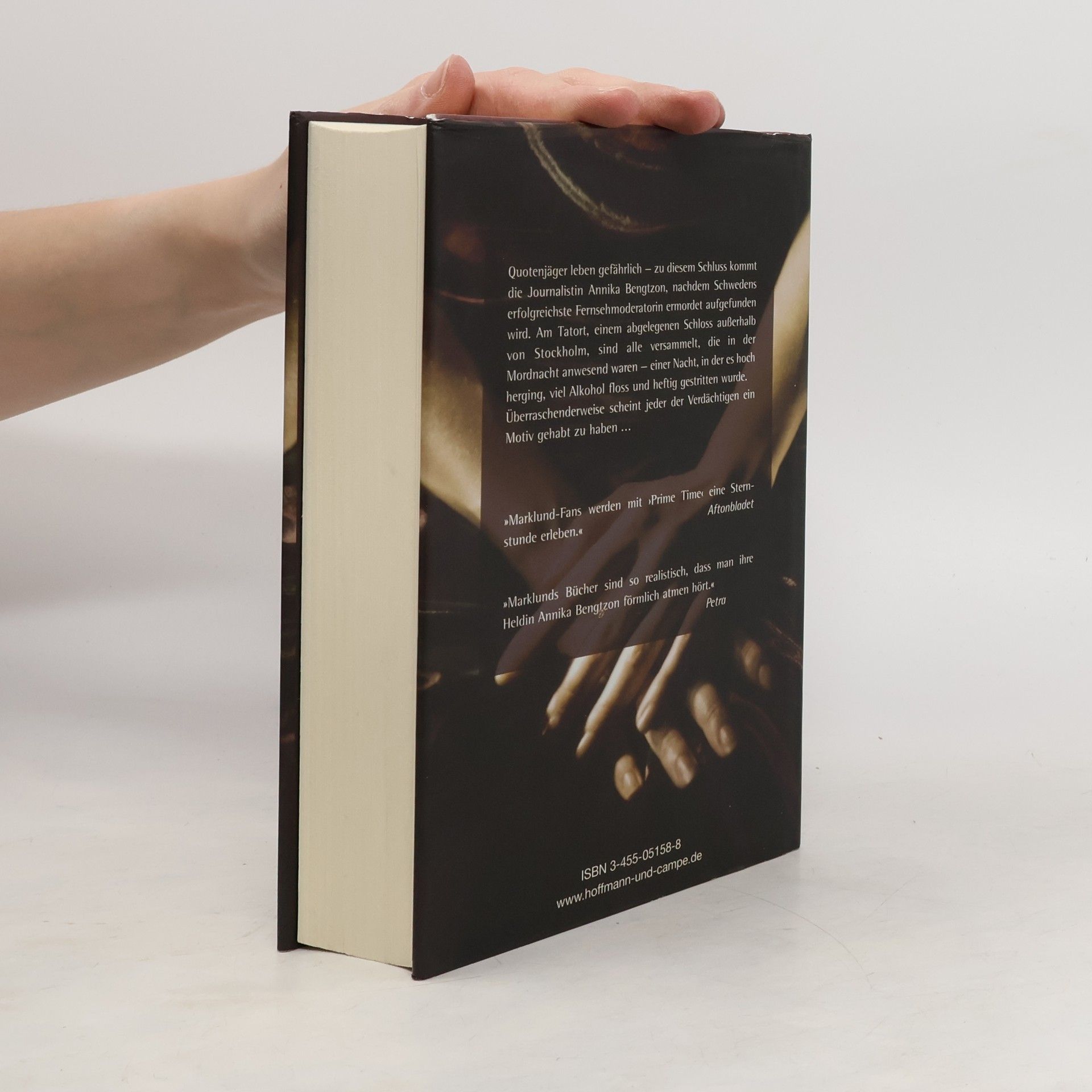 \"Die ganze verdammte Medienwelt von Schweden ist schon da.\" So ist das nicht nur in Schweden, wenn ein TV-Star wie die attraktive Michelle Carlsson erschossen aufgefunden wird, und das vor bester Show-Kulisse: Was ist geschehen auf dem alten Schloss? War es einer der 13 Anwesenden, die irgendwie alle mit dem Star noch ein Hühnchen zu rupfen hatten? Ein Krimi mit lauten, kritischen Untertönen aus dem Milieu der Stars und Sternchen und vor allem jener, die es gerne wären. So ganz freiwillig ermittelt die kriminalistisch versierte Journalistin Annika Bengtzon nicht, aber: Biss, Neugier und Engagement gewinnen natürlich die Oberhand, der Familienurlaub fällt ins Wasser, private Krisenstimmung. Dafür hinein in die Glitterwelt der Fernsehshows, der Lügen, Heucheleien und Eifersüchteleien, dorthin, wo um jeden Preis Quoten und Geld regieren, wo sinkende Zuschauerzahlen bei den Sendern eine ähnliche Panik auslösen, wie erste Falten beim Aushänge-Star...