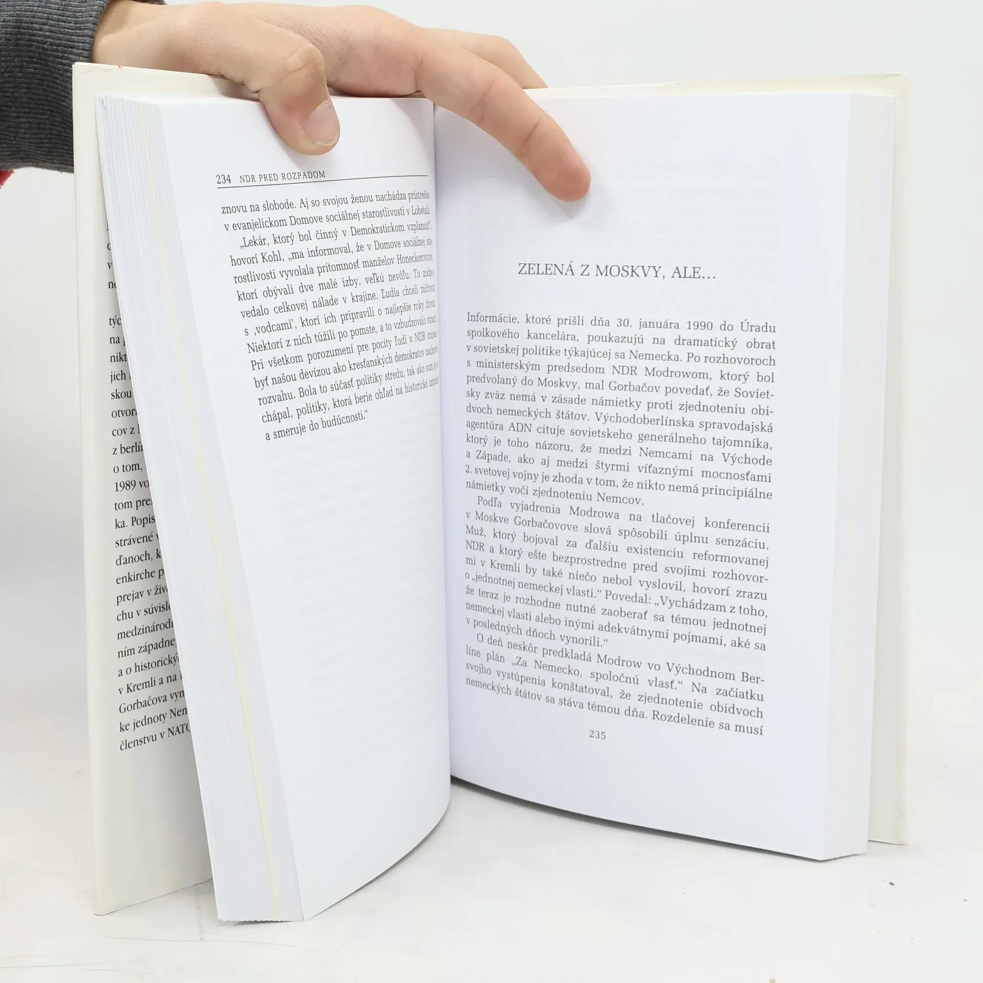 Helmut Kohl, nemecký kancelár, po prvý raz vydal podrobné svedectvo o tom, ako v skutočnosti došlo k zjednoteniu. Kohl bol takým stredobodom tých historických dní a mesiacov na prelome rokov 1989/1990 ako nikto iný. Podáva správu o svojich tajných kontaktoch s maďarskou vládou, ktorej rozhodnutie otvoriť hranice pre tisíce utečencov z NDR vylomilo prvý kameň z berlínskeho múra. Rozpráva o tom, čo zažil 9.11. 1989 vo Varšave a ako potom hneď prerušil svoju návštevu Poľska. Popisuje dojímavé hodiny strávené v decembri 1989 v Drážďanoch, keď pred ruinami Frauenkirche prednášal svoj najťažší prejav v živote. Referuje o rozruchu v súvislosti s konečným medzinárodno-právnym uznaním západnej hranice Poľska a o historických hodinách v Kremli a na Kaukaze, kde od Gorbačova vymámil „áno“ v otázke jednoty Nemecka a k jeho členstvu v NATO.