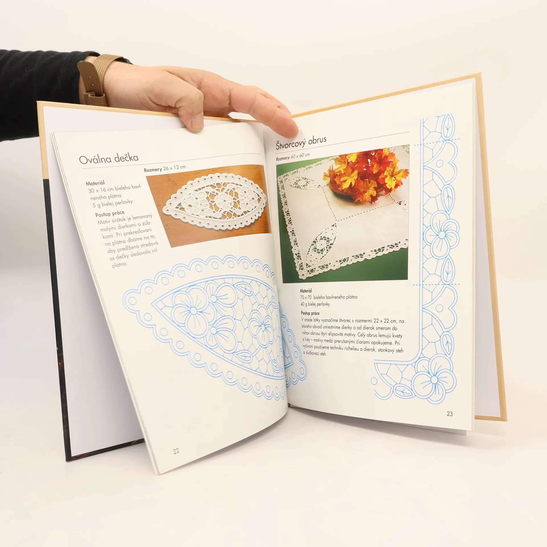 Pôvodná kniha slovenskej autorky, ktorej práce uverejňujú časopisy Dorka, Praktická žena, aj Burda. Môžete si podľa nej vyšiť originálne obrusy, obrúsky, dečky, prestieranie, vankúše.