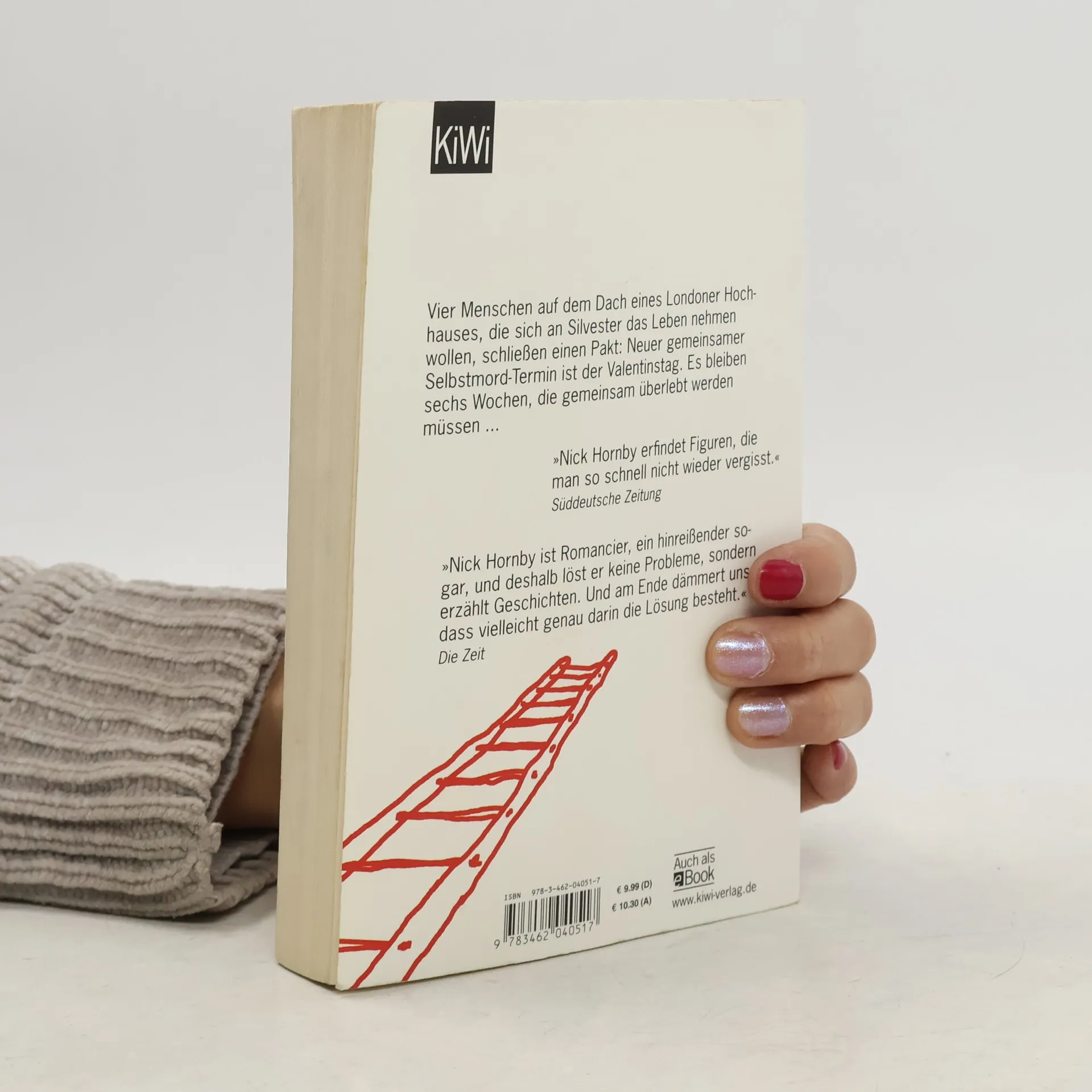 Komisch, rasant und mit schwarzem Humor – der neue Nick Hornby. Vier Menschen auf dem Dach eines Londoner Hochhauses wollen an Silvester ihr Leben beenden und schließen einen Pakt: Der neue Selbstmord-Termin ist der Valentinstag. Sechs Wochen bleiben, um gemeinsam zu überleben. Auf dem Dach treffen sich die vier, die sich nicht umbringen können, während andere zuschauen. Sie steigen vom Dach, um das Problem der jüngsten Kandidatin zu lösen, die nicht versteht, warum ihr Freund sie verlassen hat. Nach und nach teilen sie ihre Geschichten. Maureen, die allein für ihren schwerbehinderten Sohn Matty sorgt, Martin, der nach seiner Haftstrafe als Talkmaster gescheitert ist, Jess, die direkte Tochter eines Politikers, und JJ, der von seinem besten Freund im Stich gelassen wurde. Die vier beschließen, bis zum Valentinstag zu warten, um den finalen Sprung zu wagen, und finden auf unerwartete Weise zueinander. Trotz ihrer Unterschiede helfen sie sich gegenseitig. Hornby zeigt in diesem urkomischen, rasanten Roman einmal mehr seine Meisterschaft im Umgang mit schwarzem Humor und der menschlichen Psyche.