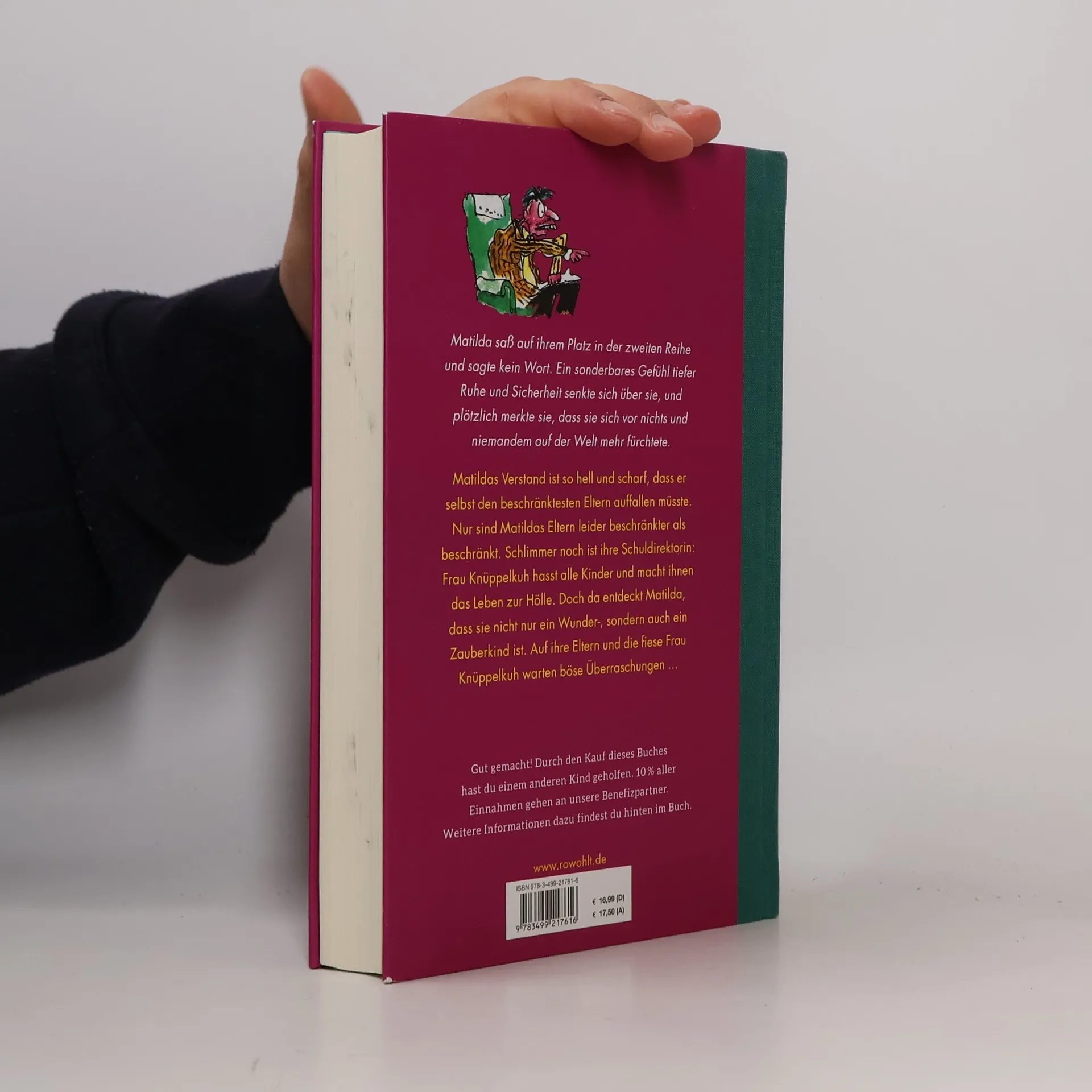 Matilda saß auf ihrem Platz in der zweiten Reihe und sagte kein Wort. Ein sonderbares Gefühl tiefer Ruhe und Sicherheit senkte sich über sie, und plötzlich merkte sie, dass sie sich vor nichts und niemandem auf der Welt mehr fürchtete. Matildas Verstand ist so hell und scharf, dass er selbst den beschränktesten Eltern auffallen müsste. Nur sind Matildas Eltern leider beschränkter als beschränkt. Schlimmer noch ist ihre Schuldirektorin: Frau Knüppelkuh hasst alle Kinder und macht ihnen das Leben zur Hölle. Doch da entdeckt Matilda, dass sie nicht nur ein Wunder-, sondern auch ein Zauberkind ist. Auf ihre Eltern und die fiese Frau Knüppelkuh warten böse Überraschungen ...