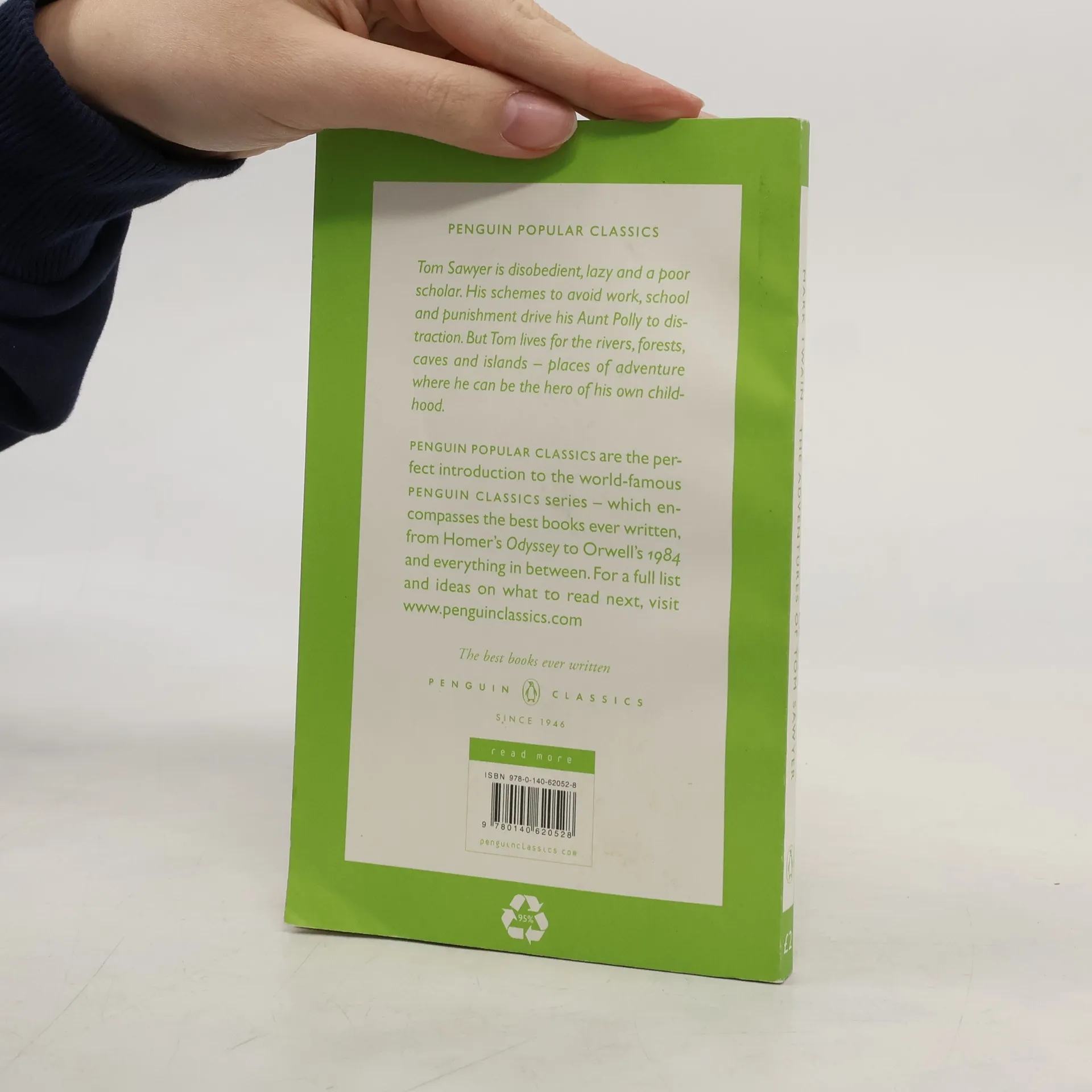 "One of the most popular novels of nineteenth century America, Tom Sawyer evokes an endless innocence, delights in spontaneous acts of heroism and chivalry and is an unparalleled celebration of childhood. Tom is one of the "bad" boys of his home town, St Petersburg, Missouri. Reckless, lazy, maddeningly inquisitive, lie is a poor scholar and a menace to his Aunt Polly. His schemes for avoiding work, school and punishment are quite sublime. In his own world, however, the world of rivers, forests, caves and islands, lie is in his element ; even something of a hero. Its careful balance between nostalgia and cruelty, its rich vein of humour and its re-creation of a sunny world where the spirit can be free, have placed this tale of boyhood adventure forever in the hearts and minds of all its readers.