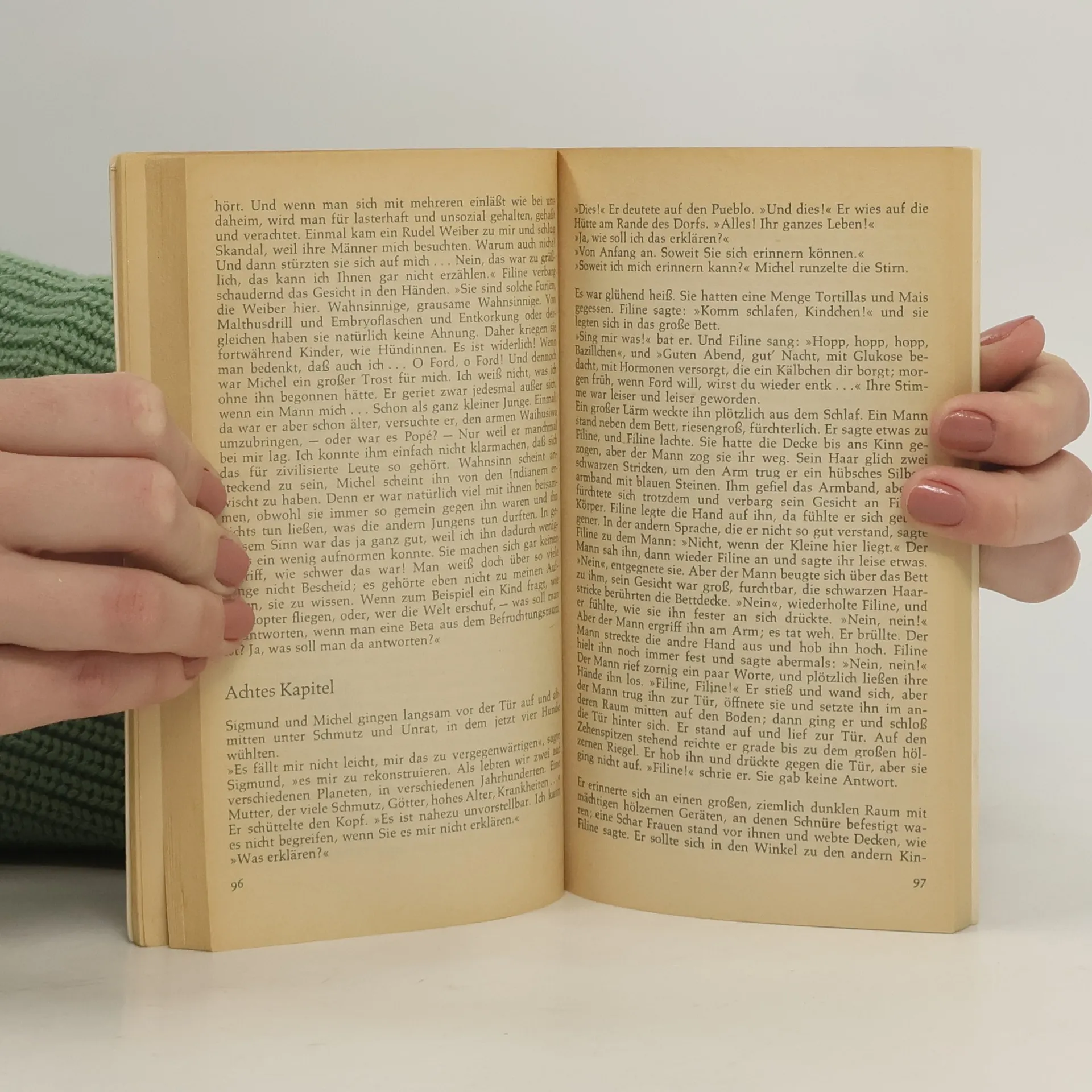 Die schöne neue Welt, die Huxley hier beschreibt, ist die Welt einer konsequent verwirklichten Wohlstandsgesellschaft »im Jahre 632 nach Ford«, einer Wohlstandsgesellschaft, in der alle Menschen am Luxus teilhaben, in der Unruhe, Elend und Krankheit überwunden, in der aber auch Freiheit, Religion, Kunst und Humanität auf der Strecke geblieben sind. Eine totale Herrschaft garantiert ein genormtes Glück. In dieser vollkommen »formierten« Gesellschaft erscheint jede Art von Individualismus als »asozial«, wird als »Wilder« betrachtet, wer - wie einer der rebellischen Außenseiter dieses Romans - für sich fordert: »Ich brauche keine Bequemlichkeit. Ich will Gott, ich will Poesie, ich will wirkliche Gefahren und Freiheit und Tugend. Ich will Sünde!«