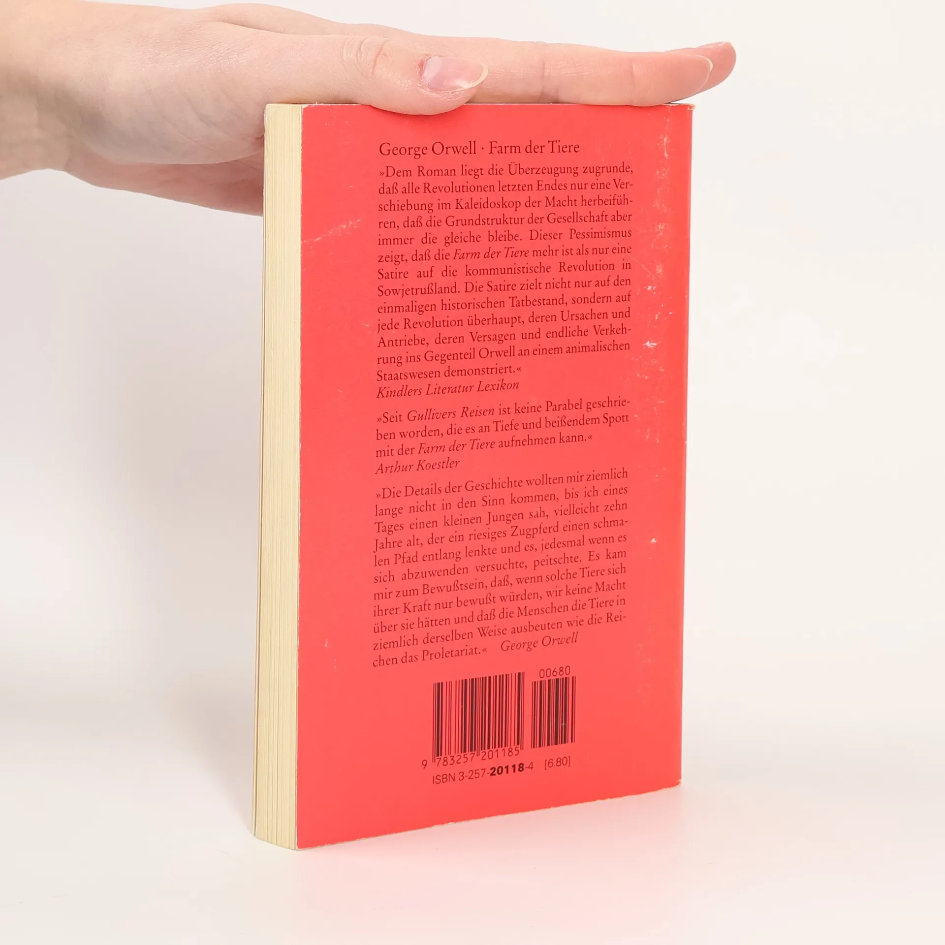 »Die Fabel vom Aufstand der Tiere des Farmers Jones und vom allmählichen Umschlag der Revolution in ihr den status quo ante wiederherstellendes Gegenteil gehört zu den bekanntesten literarischen Werken des 20. Jahrhunderts. Der Satz Alle Tiere sind gleich, aber einige Tiere sind gleicher als andere wurde zum geflügelten Wort.«