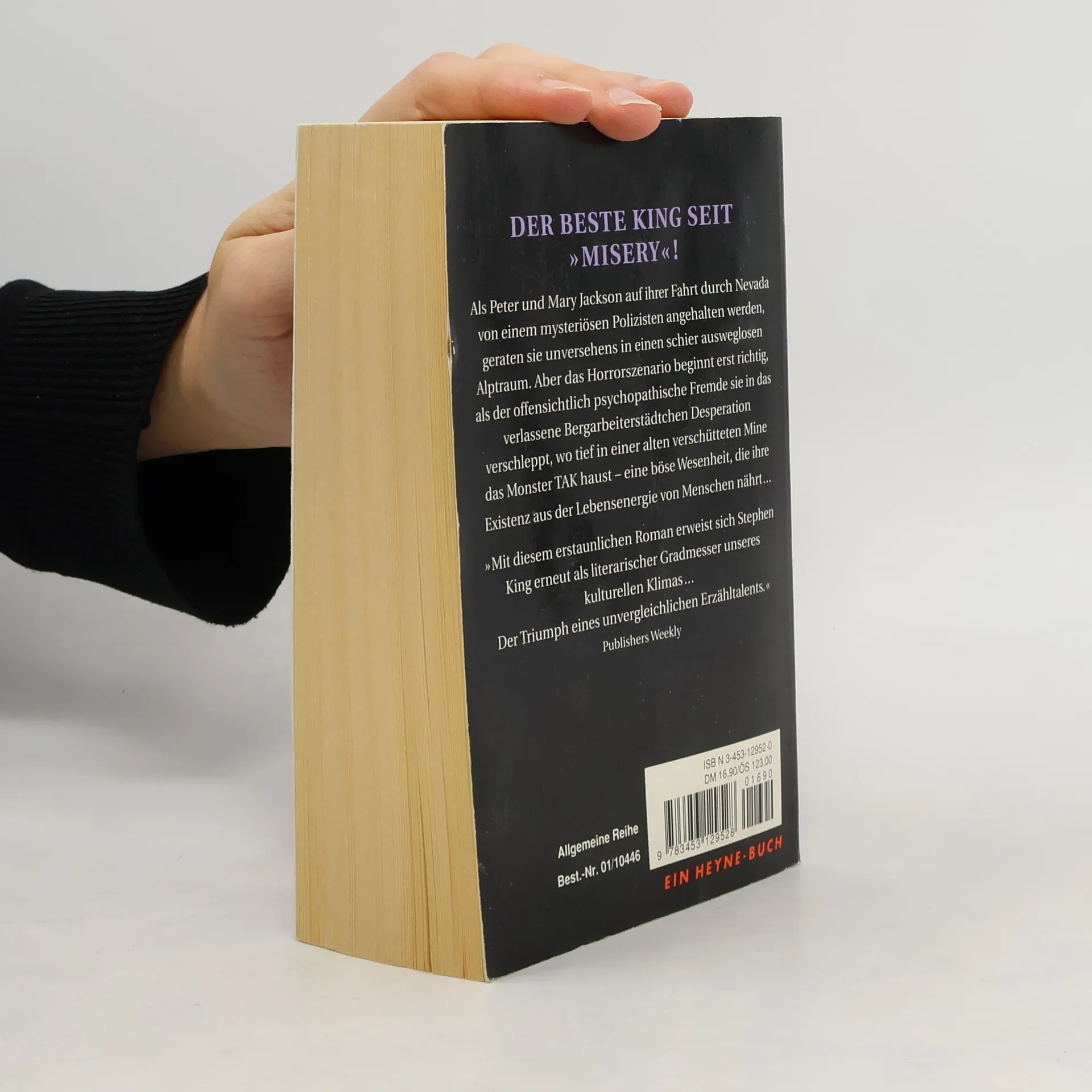 Peter und Mary Jackson geraten auf ihrer Fahrt durch Nevada in einen ausweglosen Alptraum: Ein psychopathischer Fremder verschleppt sie in die verlassene Bergarbeiterstaddt Desperation, wo in einem Minenschacht das Monster TAK haust. TAK ernährt sich aus der Lebensenergie von Menschen. 'Kein anderer Schriftsteller der Gegenwart beherrscht so sehr die Klaviatur des Grauens wie Stephen King.' DIE WELT