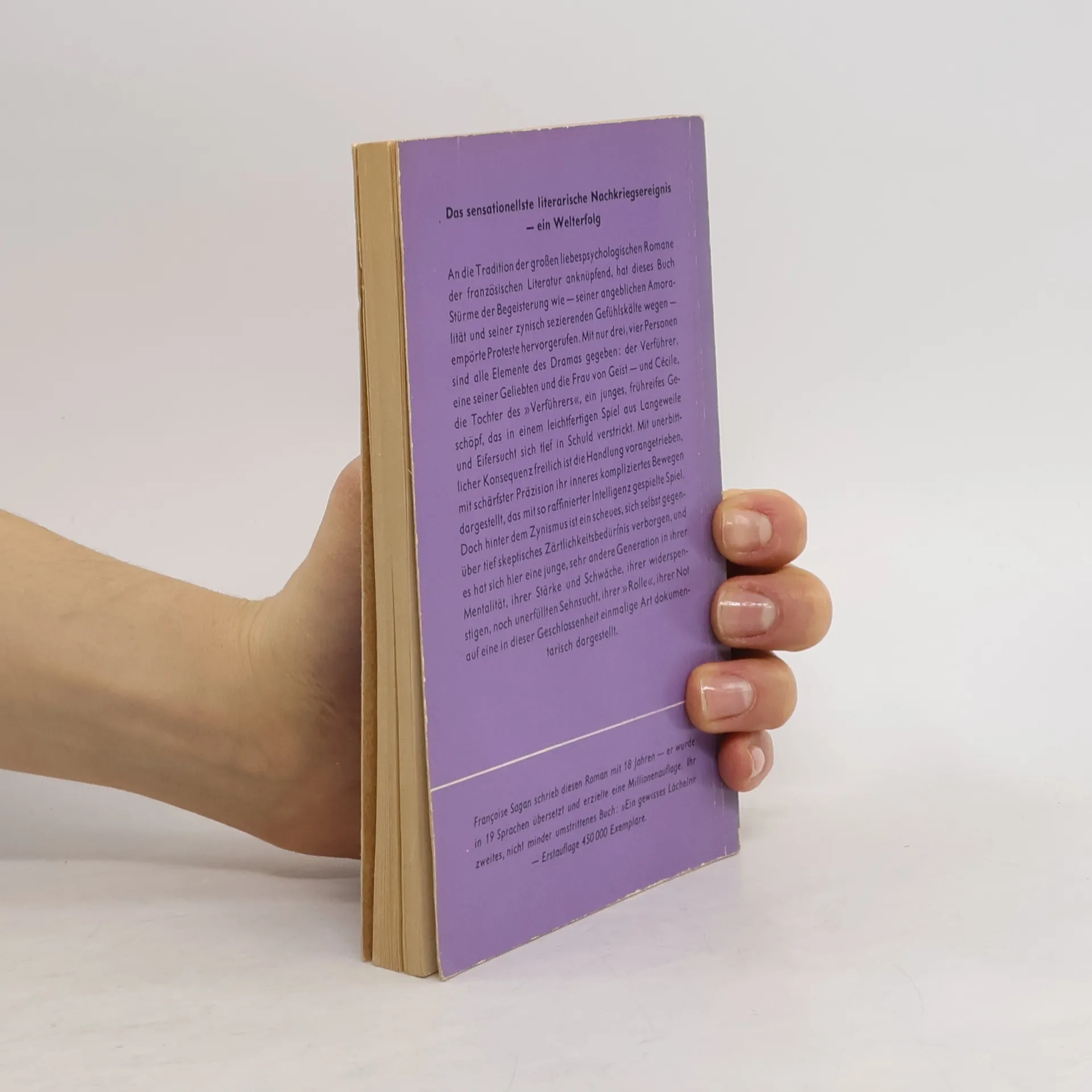 Millionenbestseller und Skandalroman: Die freizügige Sommergeschichte um einen charmanten Witwer und seine Tochter Cécile, die die neue Liebhaberin ihres Vaters in den Tod treibt, machte die damals 18jährige Sagan mit einem Schlag berühmt.