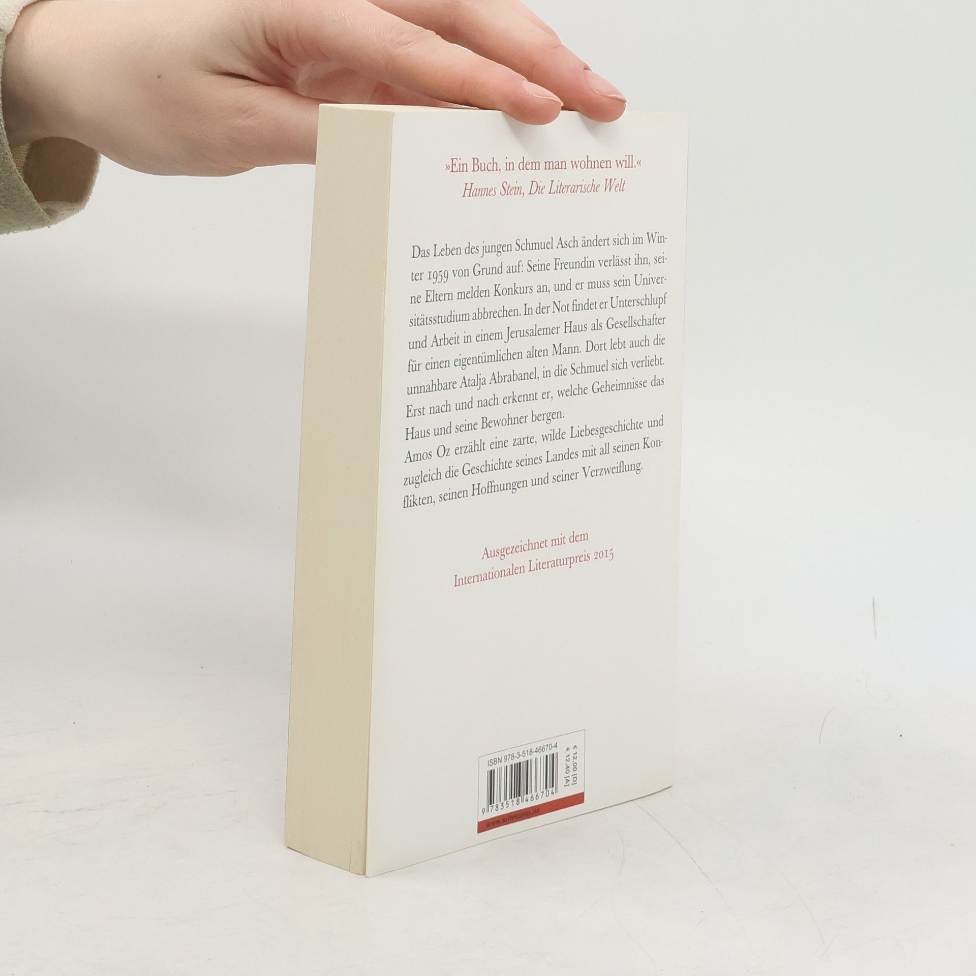 Im Winter 1959 kommt der junge Schmuel Asch nach Jerusalem, um seine Magisterarbeit zu schreiben. Allein und ohne finanzielle Unterstützung, braucht er dringend eine Nebenbeschäftigung. Eine Anzeige führt ihn ins Haus eines eigentümlichen alten Mannes namens Wald; nachts liest er ihm vor und unterhält sich mit ihm – über die Ideale des Zionismus, über die jüdisch-arabischen Konflikte. Und dort trifft er auf die geheimnisvolle Atalja Abrabanel, deren verstorbener Vater einer der maßgeblichen Anführer der zionistischen Bewegung war. Sogleich ist Schmuel gefesselt von der Schönheit und Unnahbarkeit dieser Frau. Nach und nach gelingt es Schmuel, ihr Geheimnis zu enthüllen – und damit auch das des alten Wald. Amos Oz hat einen Liebesroman geschrieben und zugleich ein Buch über das geteilte Jerusalem vor dem Sechs-Tage-Krieg, eine Geschichte seines Landes mit all seinen Konflikten, seinen Hoffnungen und seiner Verzweiflung.