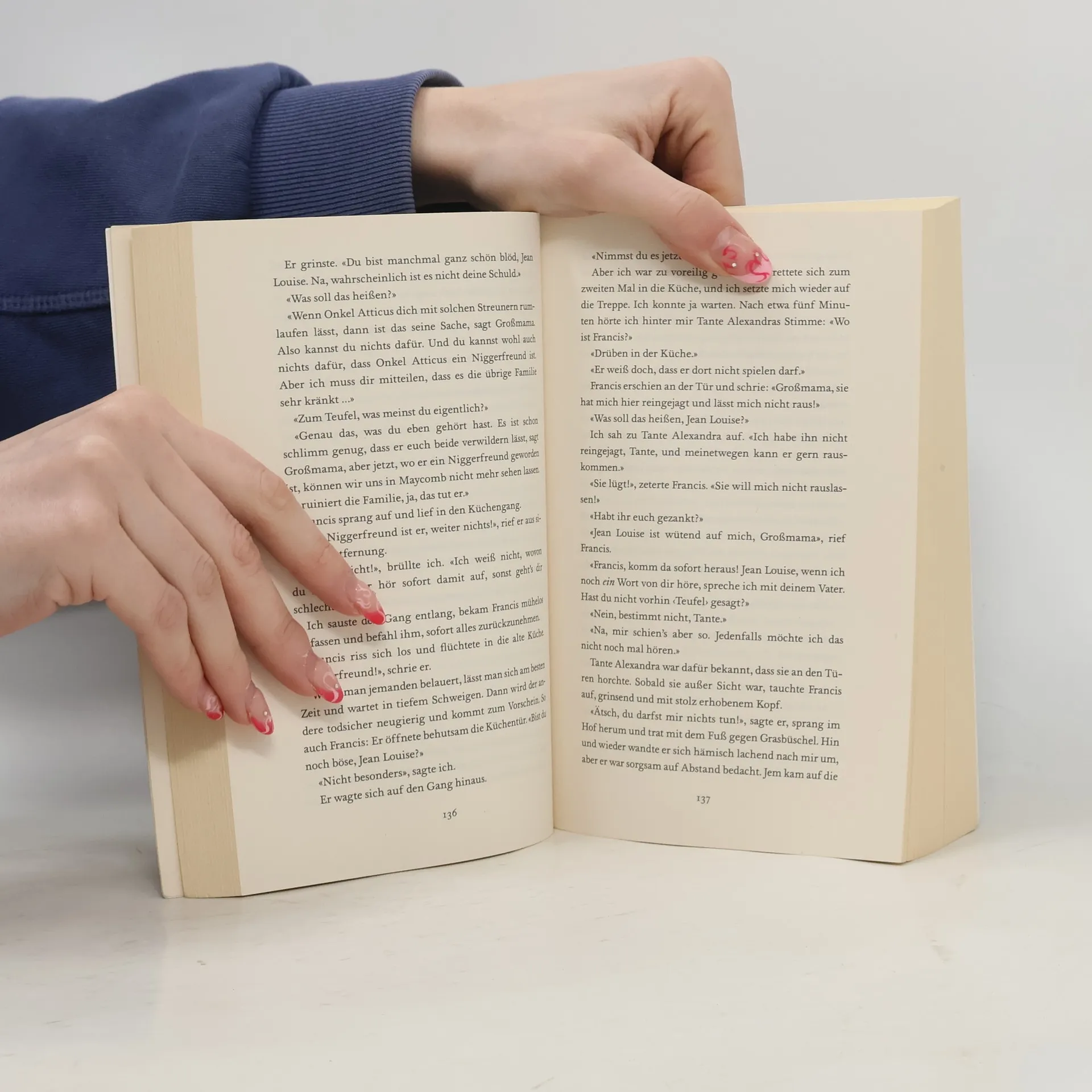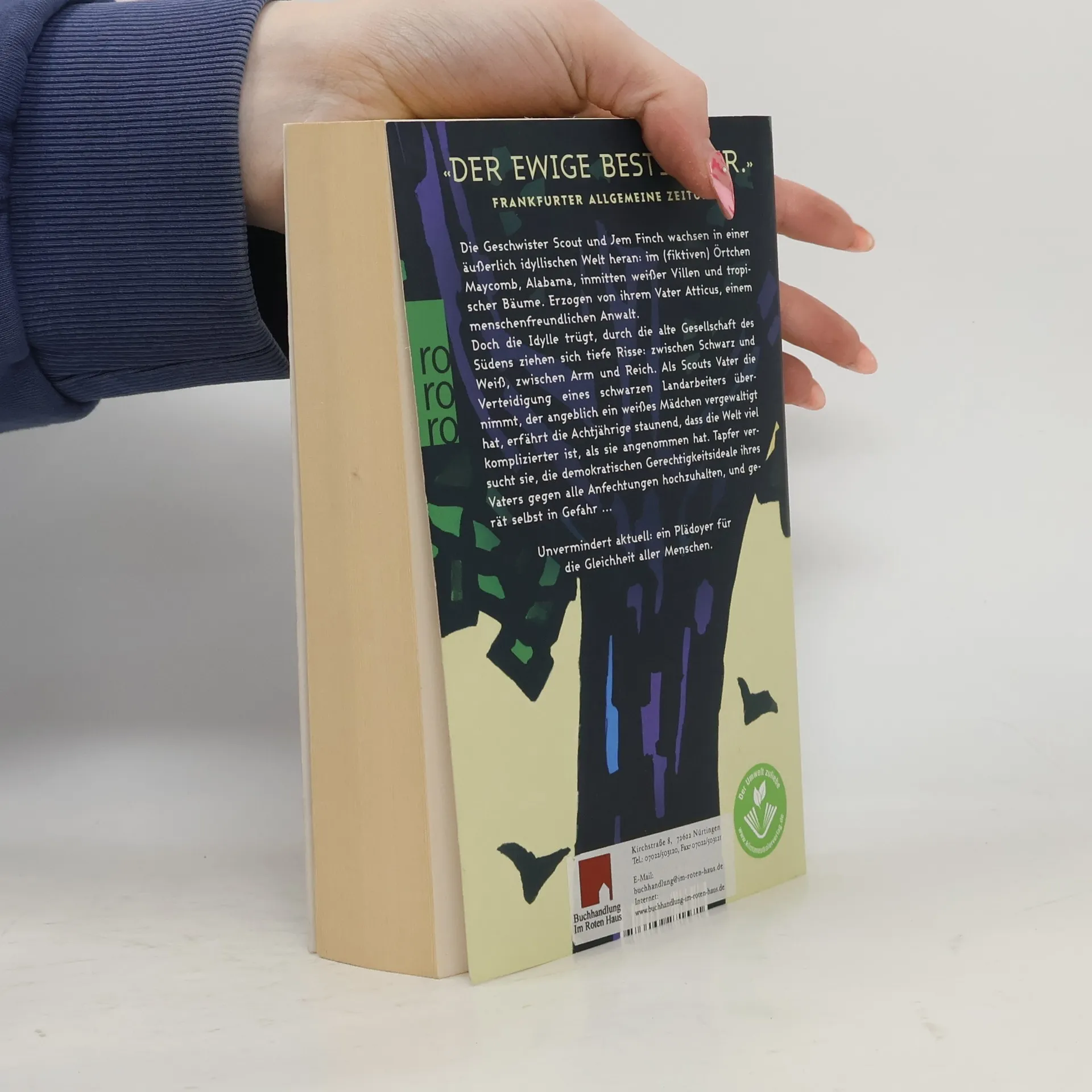 Amerika in den 30er Jahren . Die Geschwister Scout und Jem Finch wachsen in einer äußerlich idyllischen Welt heran: im Örtchen Maycomb, Alabama, inmitten weißer Villen und tropischer Bäume. Erzogen von ihrem Vater Atticus, einem menschenfreundlichen Anwalt. Doch die Idylle trügt, durch die alte Gesellschaft des Südens ziehen sich tiefe Risse: zwischen Schwarz und Weiß, zwischen Arm und Reich. Als Scouts Vater die Verteidigung eines schwarzen Landarbeiters übernimmt, der angeblich ein weißes Mädchen vergewaltigt hat, erfährt die Achtjährige staunend, dass die Welt viel komplizierter ist, als sie angenommen hat. Tapfer versucht sie, die demokratischen Gerechtigkeitsideale ihres Vaters gegen alle Anfechtungen hochzuhalten, und gerät selbst in Gefahr … Unvermindert aktuell: ein Plädoyer für die Gleichheit aller Menschen. Der zeitlose Klassiker über Rassismus und Heldenmut.