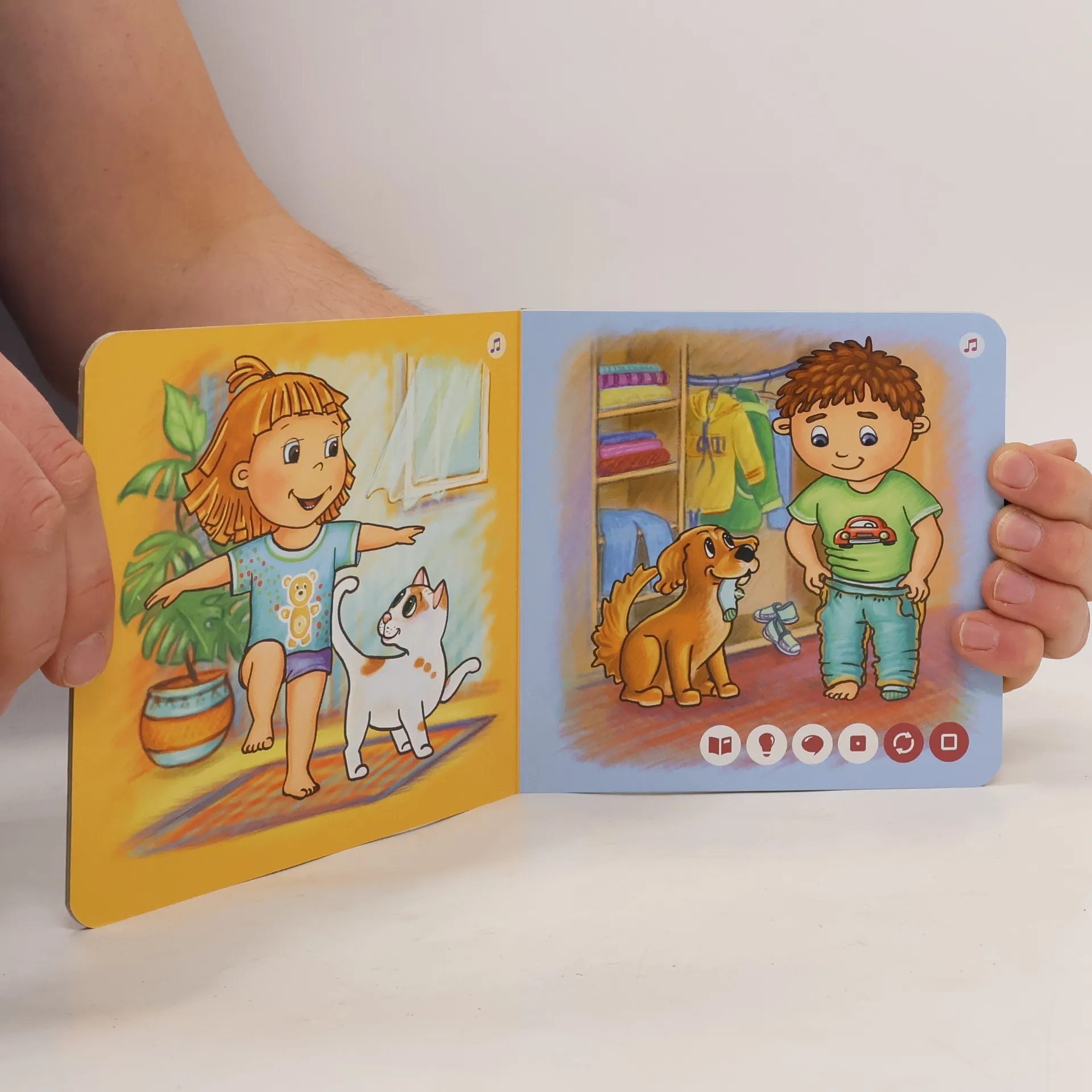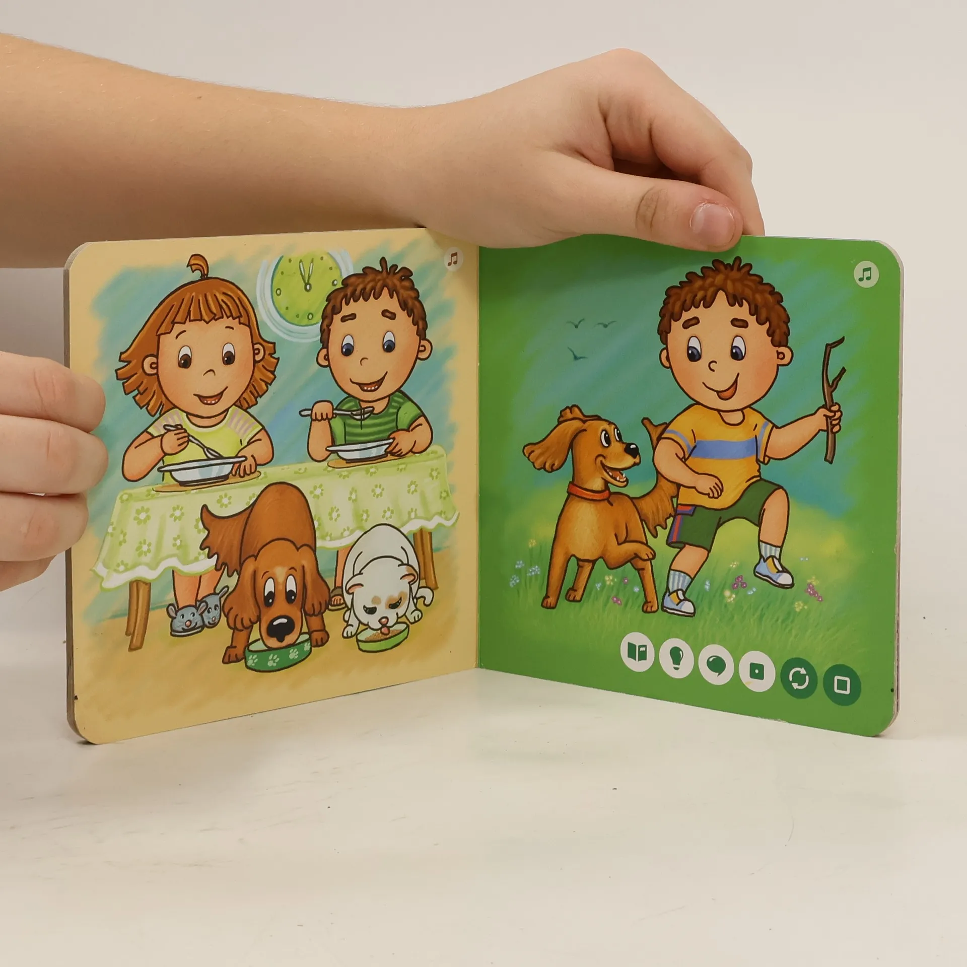 Pojďte strávit jeden den se sourozenci Honzíkem a Barborkou a jejich věrnými společníky, pejskem Benem a kočičkou Mínou. Vstanete s nimi, vyčistíte si zoubky, dáte si něco dobrého k obědu, pohrajete si a můžete si i zazpívat. Všechny činnosti totiž doprovází písnička.