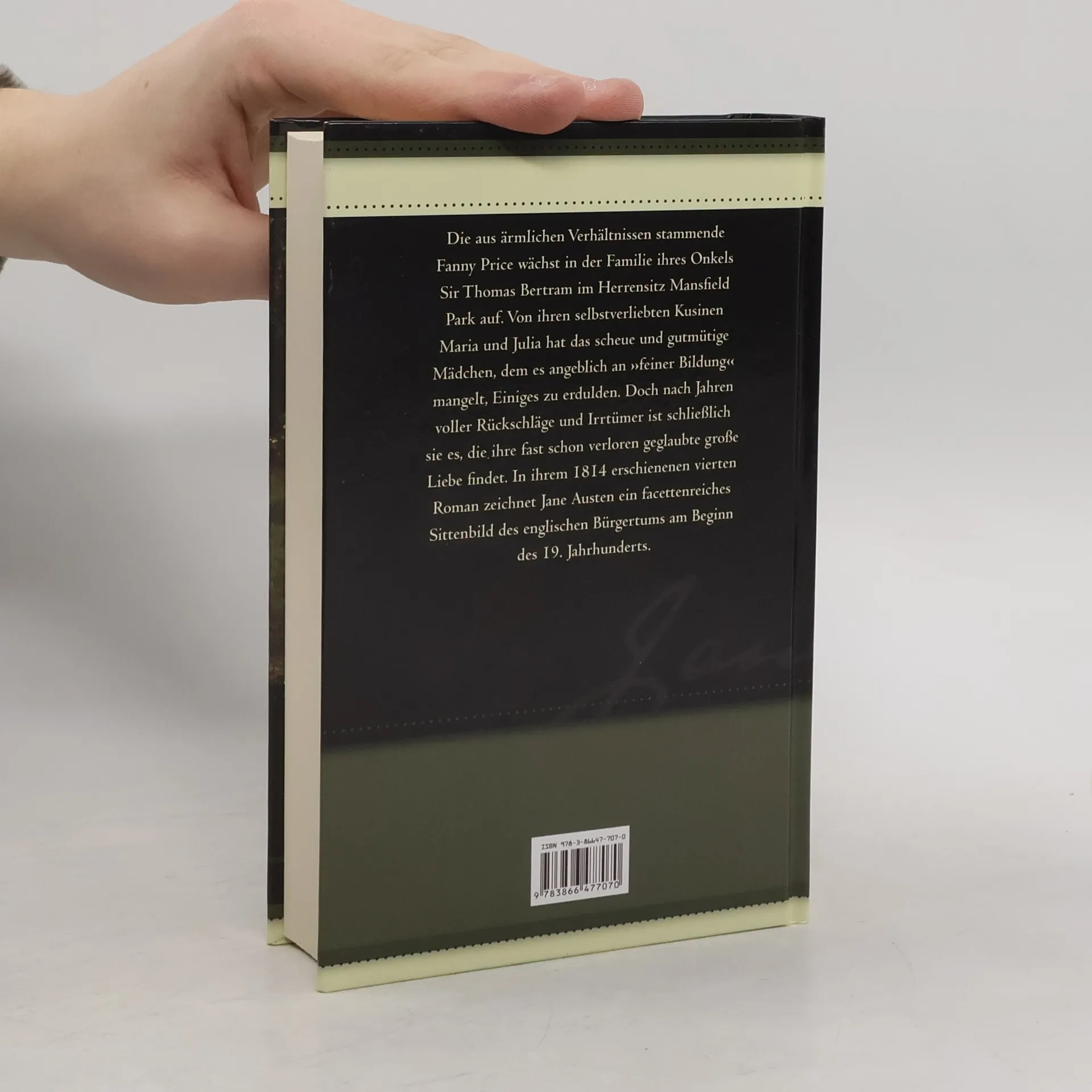 Die aus ärmlichen Verhältnissen stammende Fanny Price wächst in der Familie ihres Onkels Sir Thomas Bertram im Herrensitz Mansfield Park auf. Von ihren selbstverliebten Kusinen Maria und Julia hat das scheue und gutmütige Mädchen, dem es angeblich an »feiner Bildung« mangelt, Einiges zu erdulden. Doch nach Jahren voller Rückschläge und Irrtümer ist schließlich sie es, die ihre fast schon verloren geglaubte große Liebe findet. In ihrem 1814 erschienenen vierten Roman zeichnet Jane Austen ein facettenreiches Sittenbild des englischen Bürgertums am Beginn des 19. Jahrhunderts.