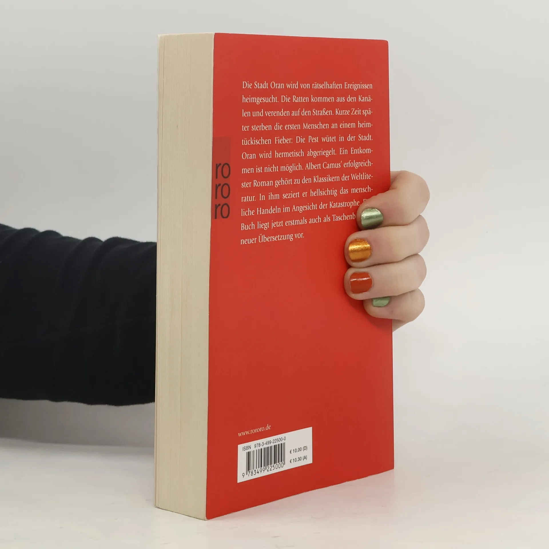 «Camus irrt sich nicht in seinem Roman. Das Drama sind nicht die, die durch die Hintertür zum Friedhof entwischen – und für die die Angst vor der Pest endlich vorbei war –, sondern die Lebenden, die in ihren stickigen Schlafzimmern Blut schwitzten, ohne der belagerten Stadt entfliehen zu können.» (Gabriel García Márquez)Die Stadt Oran wird von rätselhaften Ereignissen heimgesucht. Die Ratten kommen aus den Kanälen und verenden auf den Straßen. Kurze Zeit später sterben die ersten Menschen an einem heimtückischen Fieber: Die Pest wütet in der Stadt. Oran wird hermetisch abgeriegelt. Ein Entkommen ist nicht möglich. Albert Camus’ erfolgreichster Roman gehört zu den Klassikern der Weltliteratur. In ihm seziert er hellsichtig das menschliche Handeln im Angesicht einer Katastrophe.
