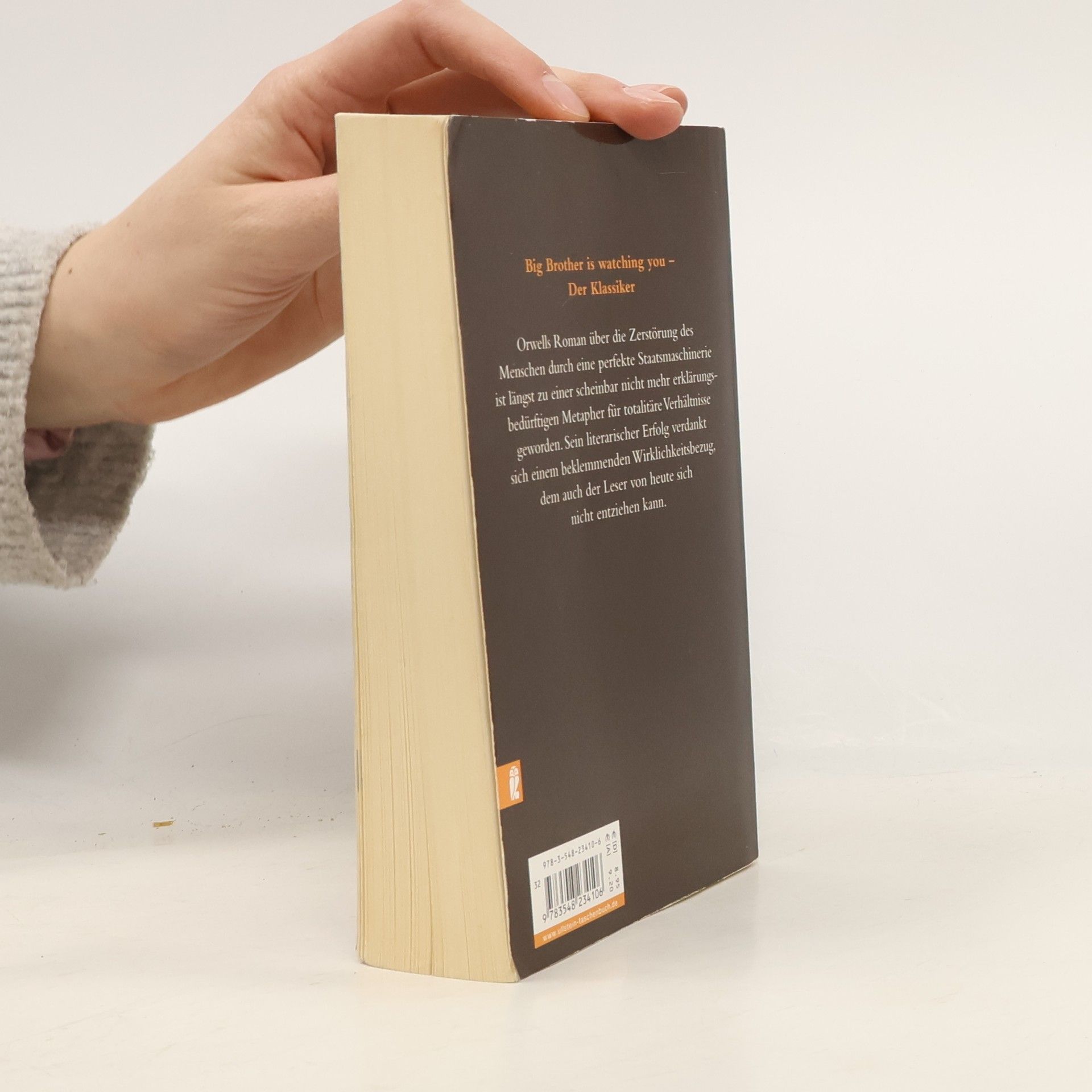 alternate cover edition for this ISBN can be found here Orwells Roman über die Zerstörung des Menschen durch eine perfekte Staatsmaschinerie ist längst zu einer scheinbar nicht mehr erklärungsbedürftigen Metapher für totalitäre Verhältnisse geworden. Sein literarischer Erfolg verdankt sich einem beklemmenden Wirklichkeitsbezug, dem auch der Leser von heute sich nicht entziehen kann.