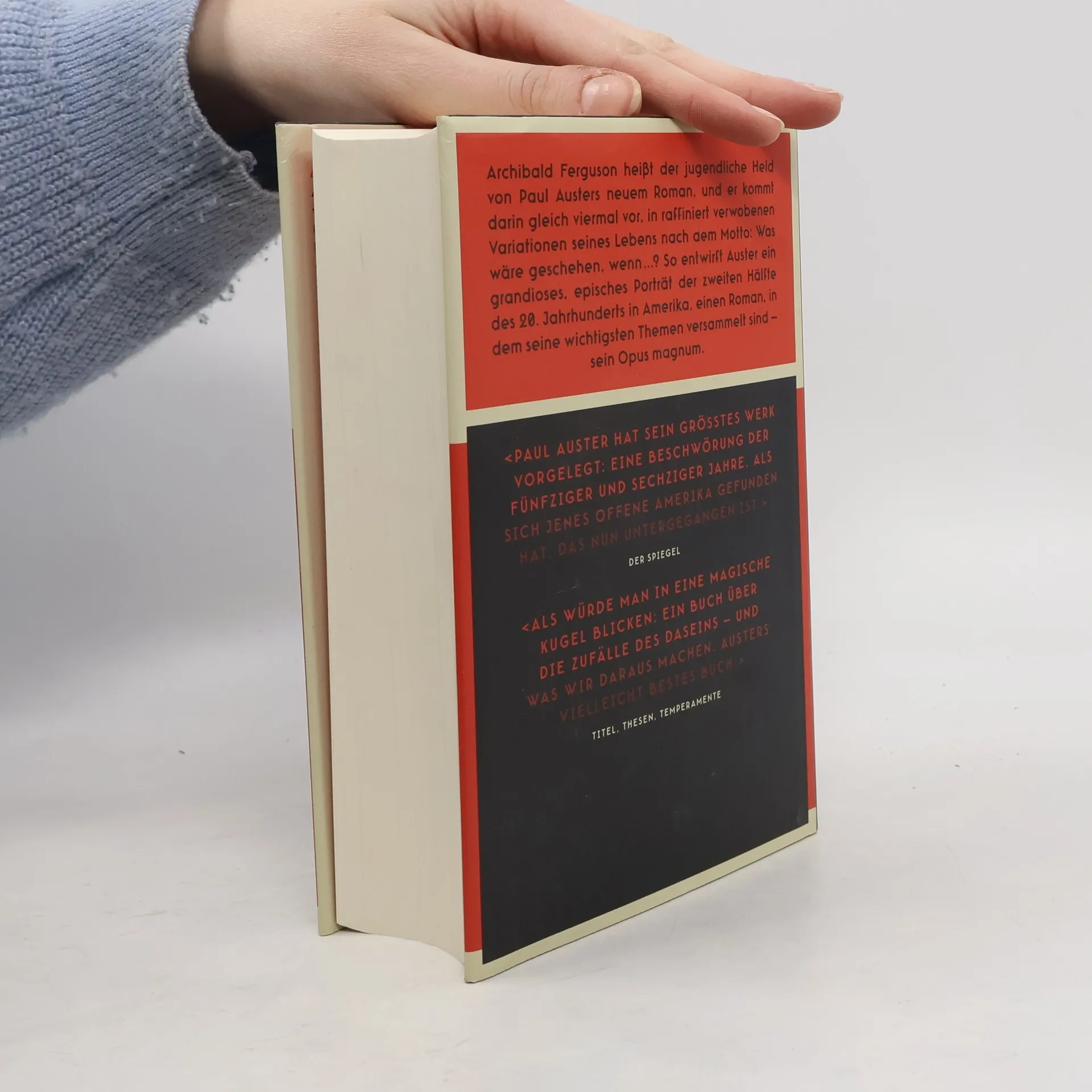Paul Auster, der bekannte amerikanische Bestsellerautor, präsentiert in Form eines Rätselspiels sein umfangreichstes Werk: die vierfach unterschiedlich erzählte Geschichte eines jungen Amerikaners in den fünfziger und sechziger Jahren – ein Epos voller Politik, Zeitgeschichte, Liebe und dem Spiel des Zufalls. '4 3 2 1' beschreibt vier Variationen eines Lebens: Archibald Ferguson, genannt Archie, wächst im Newark der fünfziger Jahre auf. Als kleiner Junge denkt er darüber nach, wie alles anders sein könnte, obwohl er selbst derselbe bleibt. In Zusammenarbeit mit einer von Auster raffiniert gelenkten literarischen Vorsehung entfalten sich vier unterschiedliche Versionen von Archies Leben: provinziell und bescheiden; kämpferisch, aber vom Unglück verfolgt; betroffen und besessen von den Ereignissen der Zeit; künstlerisch genial und nach den Sternen greifend. Alle vier Lebenswege sind reich an Abenteuern, Liebe, Lebenskämpfen und den Schlägen eines unberechenbaren Schicksals. Dieses Werk ist ein faszinierendes Gedankenspiel und ein Höhepunkt in Austers Schaffen. Es vereint seine großen Themen – das Streben nach Glück, die Rolle des Zufalls, Politik und Zeitgeschichte von Hiroshima bis Vietnam – und verdichtet sie in den hoffnungsvollen Lebenswegen eines jungen Mannes, der sein Glück in der Welt sucht.
