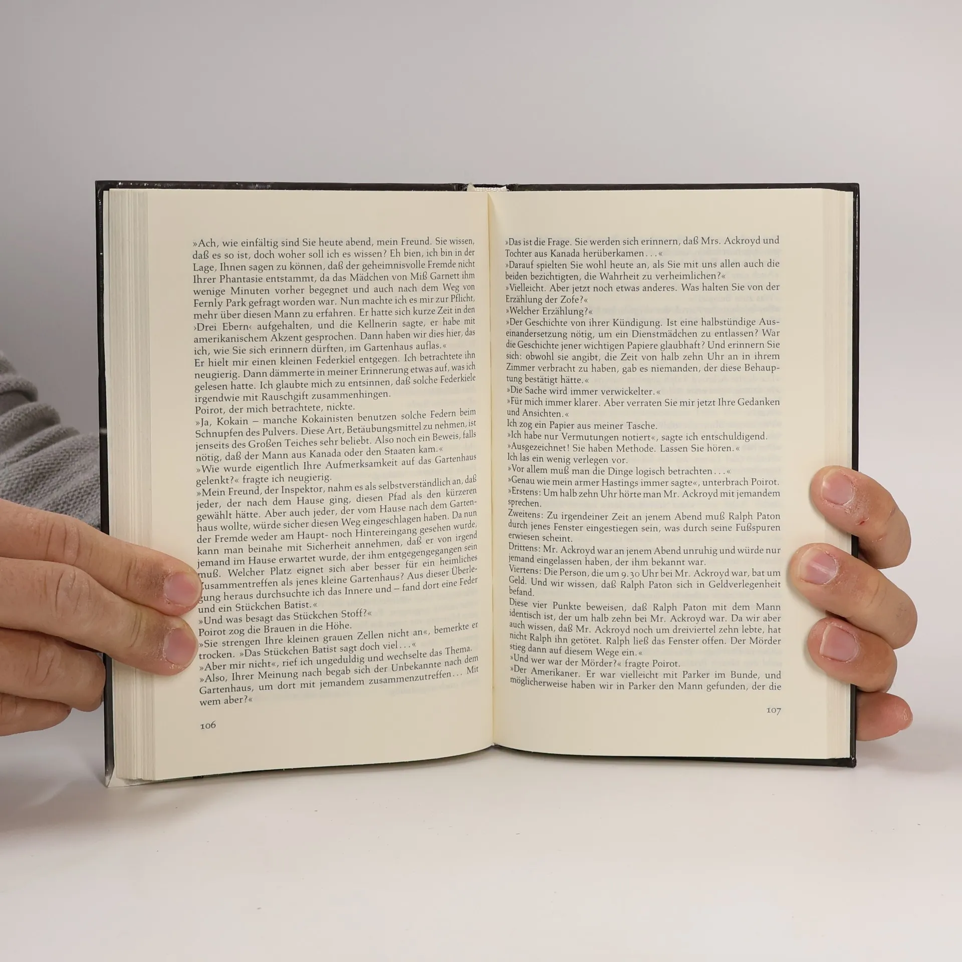 «Jeder hat etwas zu verbergen», erklärt Hercule Poirot. Und tatsächlich wird gemunkelt in dem beschaulichen Dorf, in das sich Poirot zurückgezogen hatte, um Kürbisse zu züchten: Mrs Ferrars soll ihren Mann vergiftet haben. Dann stirbt sie selbst an einer Überdosis Veronal. Wurde sie vielleicht erpresst? Und hatte sie tatsächlich eine Affäre mit Roger Ackroyd? Der wird schließlich mit einem tunesischen Dolch erstochen aufgefunden. Und sein Stiefsohn ist spurlos verschwunden. Vielleicht weiß ja der Vertrauen erweckende Dr. Sheppard wo er sich aufhält, doch der nimmt es mit der ärztlichen Schweigepflicht sehr genau...