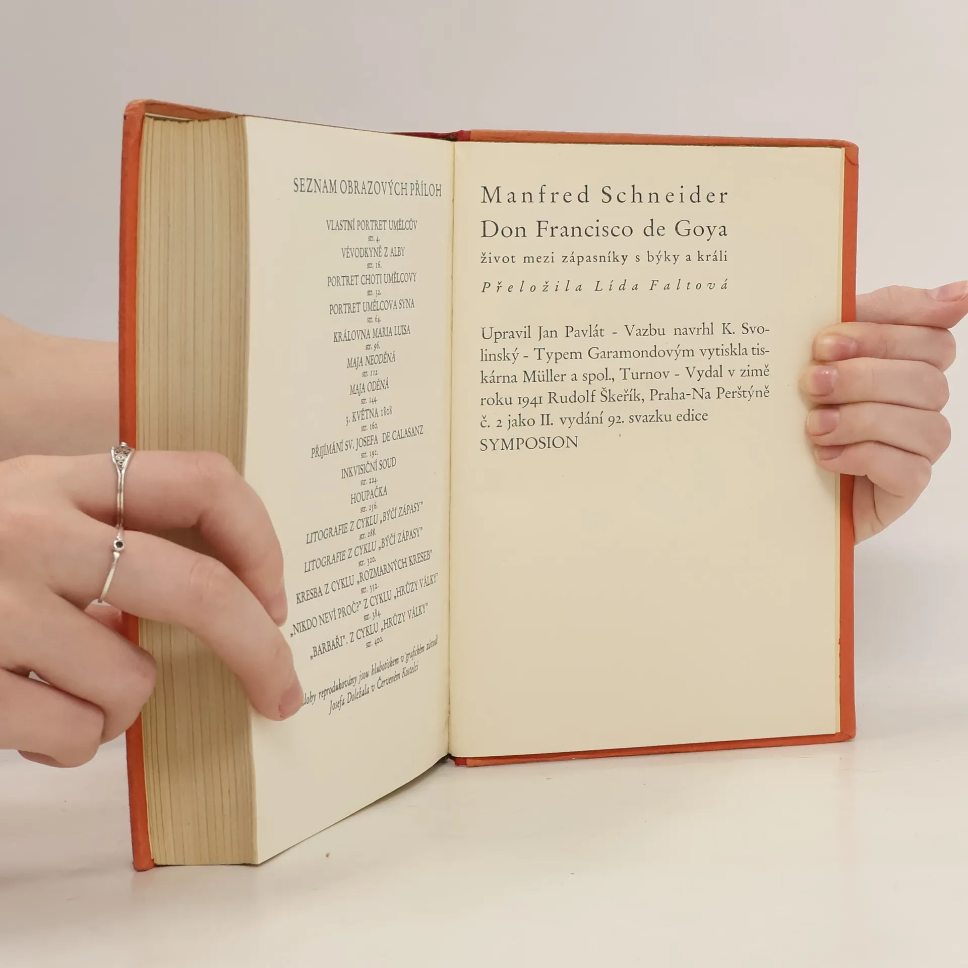 Vydal v zimě roku 1941 Rudolf Škeřík Praha, jako II. vydání svazku edice Symposion. Hlubotiskové přílohy Goyových obrazů.