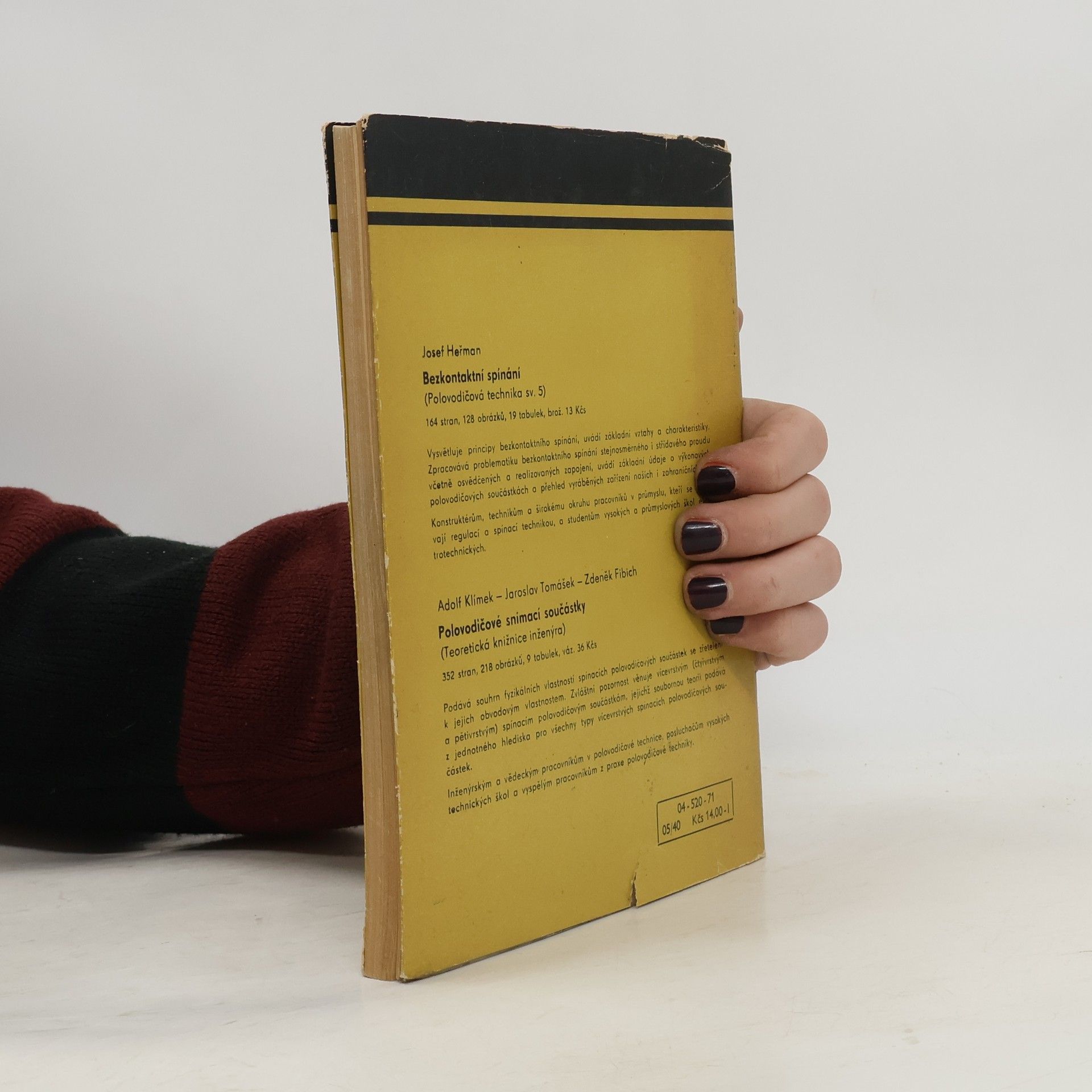 Polovodičové diody, Zenerovy diody, Tranzistory, Tyristory, Triaky, Diaky, Usměrňovací obvody, Stabilizace výstupního napětí usměrňovačů, Příklady použití usměrňovacích obvodů, Použití diod v ochranných obvodech, Spínání výkonu, Řízení výkonu tyristory a triaky, Tyristory a triaky vosvětlovací technice, Regulace rychlosti otáčení, Regulace teploty, Elektronika v motorismu, Podmínky pro úspěšnou práci polovodičových součástek, Uvádění obvodů do provozu a odstraňování poruch, Přehled parametrů vyráběných nevýkonových polovodičových součástek. 04-520-71
