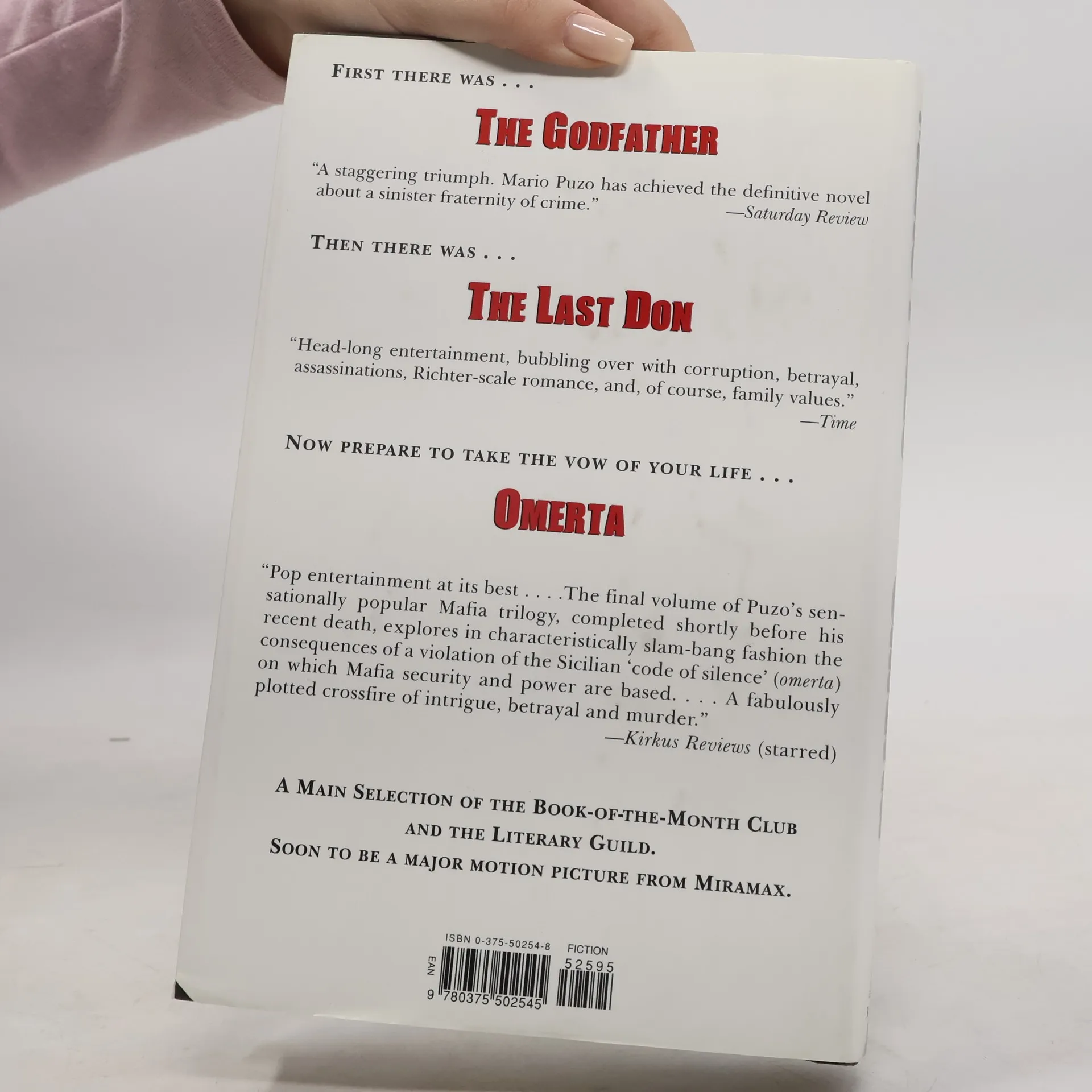 First came "The Godfather", then "The Last Don". Now prepare for the final chapter in Puzo's Mafia trilogy about power and morality in America. "Omerta", from the Italian word for "code of silence", is a powerful epitaph for the Mafia at the century's end and a final triumph for a great American storyteller.