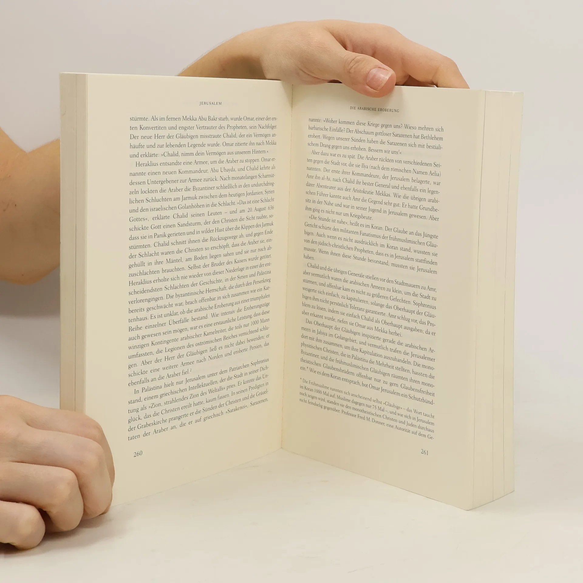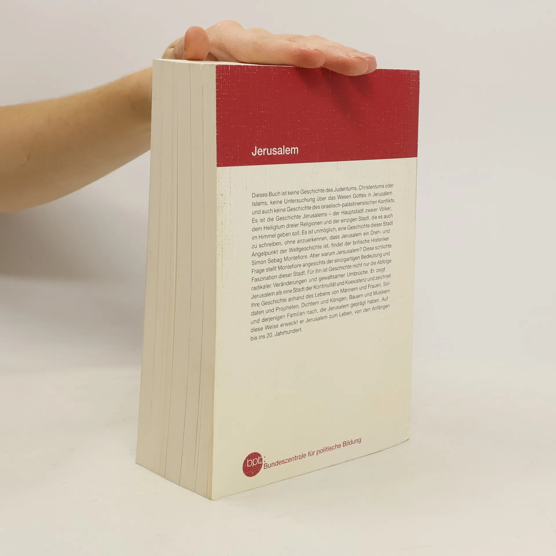Die Geschichte Jerusalems ist die Geschichte der Welt. Diese Stadt ist die Hauptstadt zweier Völker, der Schrein dreier Weltreligionen und der Brennpunkt des Nahost-Konflikts. Sie steht für 3000 Jahre Glauben, Fanatismus und Kampf, aber auch für das Zusammenleben unterschiedlichster Kulturen. In seiner reich bebilderten Biographie schildert der Bestsellerautor Sebag Montefiore packend die verschiedenen Epochen dieser sich ständig wandelnden Stadt, ihre Kriege, Affären, Könige, Propheten und Eroberer, die Jerusalem geprägt haben. Basierend auf aktueller Forschung und teils unbekanntem Archivmaterial bringt er die Essenz dieser einzigartigen Stadt zum Leuchten. Nur Jerusalem existiert zweimal: im Himmel und auf Erden. Die Westdeutsche Zeitung beschreibt das Werk als grandiose Darstellung der unglaublichen Geschichte Jerusalems, während Deutschlandfunk Montefiores lebendige Erzählweise lobt, die das Buch wie einen spannenden Krimi erscheinen lässt. Die Welt hebt hervor, dass Montefiore komplexe Themen einfach darstellt. Die Sunday Times bezeichnet das Portrait Jerusalems als überwältigend, und The Times würdigt Montefiores Fähigkeit, den Blick eines Romanciers mit dem Spürsinn eines Journalisten zu vereinen. The Independent beschreibt das Werk als fesselnd und voller Leidenschaft, eine bedeutende Leistung, die die Absurditäten und Abenteuer der Geschichte einfängt.