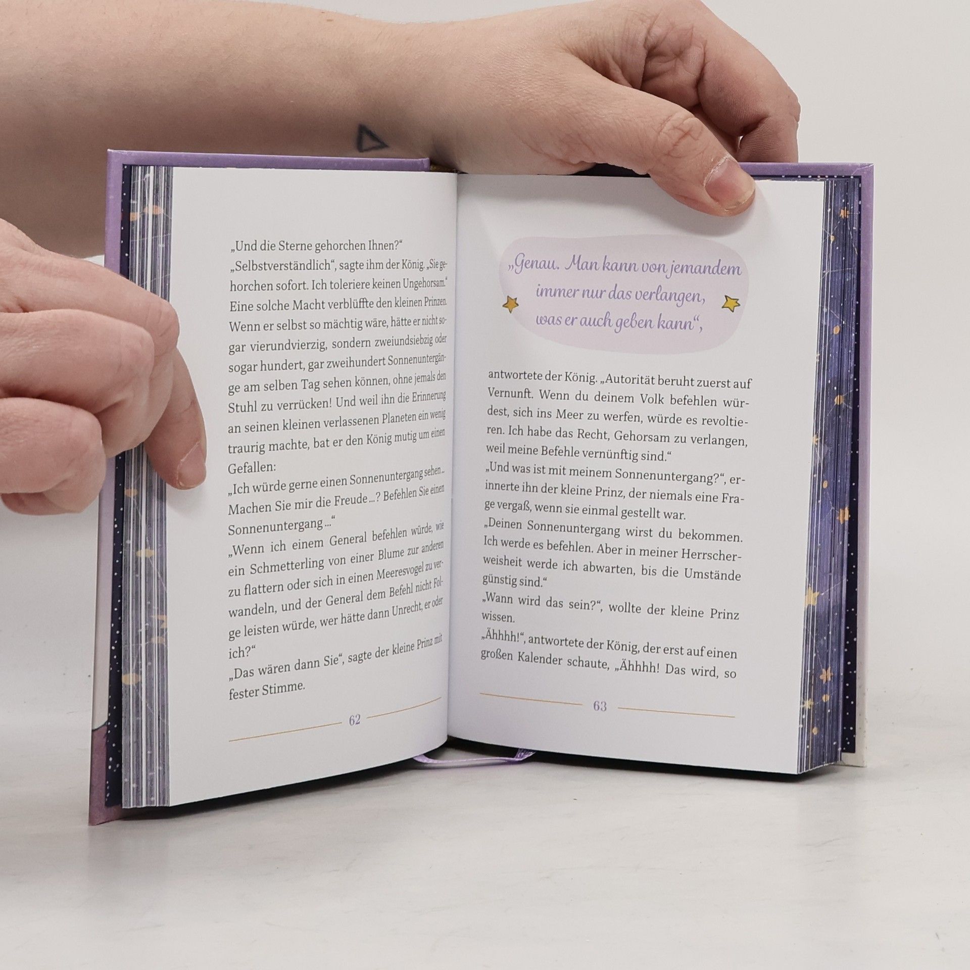 Man sieht nur mit dem Herzen gut! Klassiker der Weltliteratur als besonders edle Ausgabe Wunderschöne Veredelung mit Goldfolie, Tiefprägung und Umschlag in Leinenoptik Gemusterter Farbschnitt Eine kleine Geschichte mit großer Wirkung: Auch heute, über 80 Jahre nach seinem Erscheinen, ist die Beliebtheit des kleinen Prinzen ungebrochen. Einerseits liebevoll und verträumt, andererseits voller philosophischer Gedanken rund um die Liebe, die Freundschaft und das Leben, ist die Geschichte ein zeitloser Märchen-Klassiker für Jung und Alt. Dazu bei tragen auch die Original-Illustrationen von Antoine de Saint-Exupéry, die natürlich in diesem Buch enthalten sind. Hochwertig veredelt mit Leseband, Goldfolie, Tiefprägungen und einem Farbschnitt ist diese Ausgabe ein wunderschöner Hingucker und ein Must-have nicht nur für Sammler.