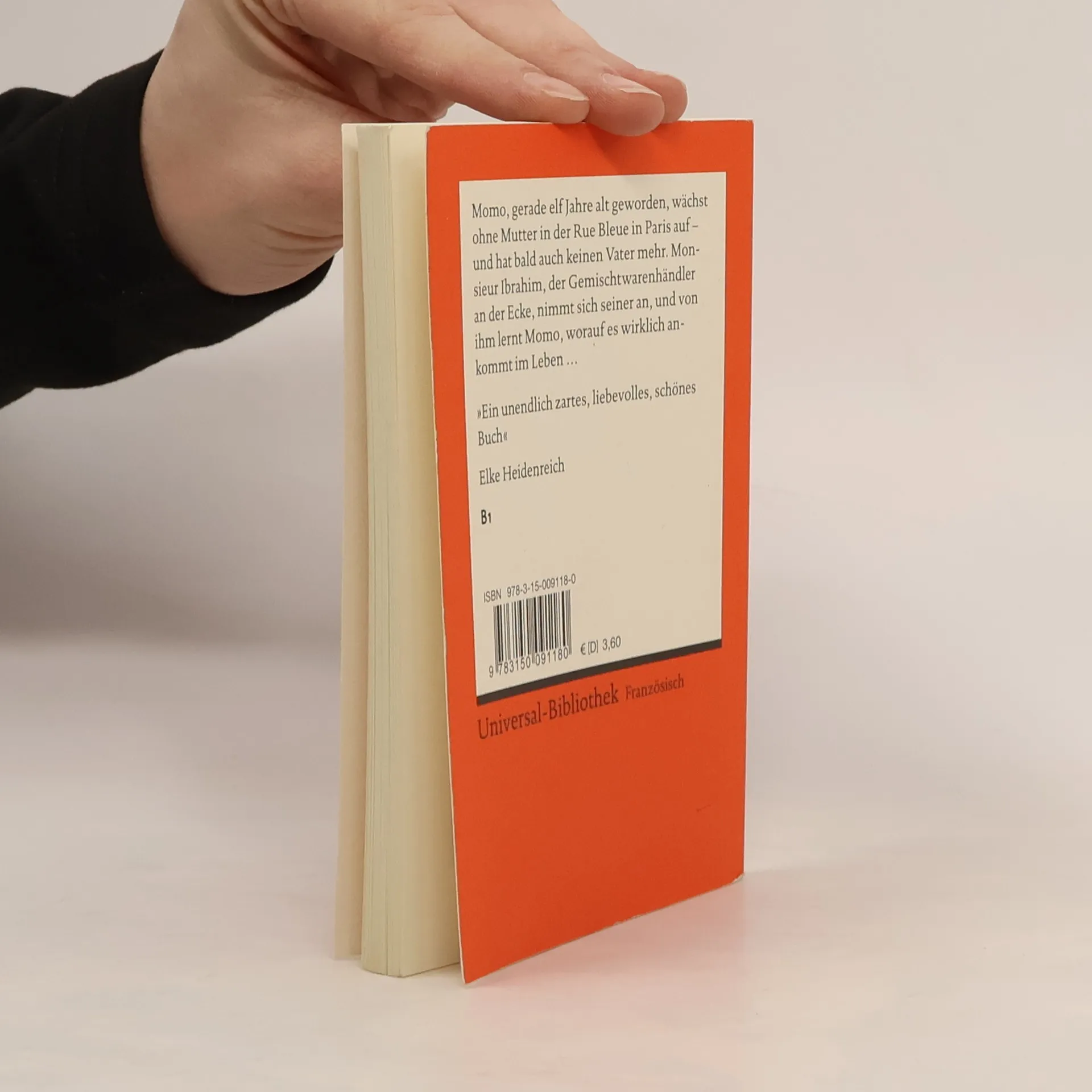 Französische Literatur in Reclams Roter Reihe: das ist der französische Originaltext – ungekürzt und unbearbeitet mit Worterklärungen am Fuß jeder Seite, Nachwort und Literaturhinweisen. Momo, gerade elf Jahre alt geworden, wächst ohne Mutter in der Rue Bleue in Paris auf – und hat bald auch keinen Vater mehr. Monsieur Ibrahim, der Gemischtwarenhändler an der Ecke, nimmt sich seiner an, und von ihm lernt Momo, worauf es wirklich ankommt im Leben … »Ein unendlich zartes, liebevolles, schönes Buch« (Elke Heidenreich) Französische Lektüre: Niveau B1 (GER) Sprachen: Französisch, Deutsch