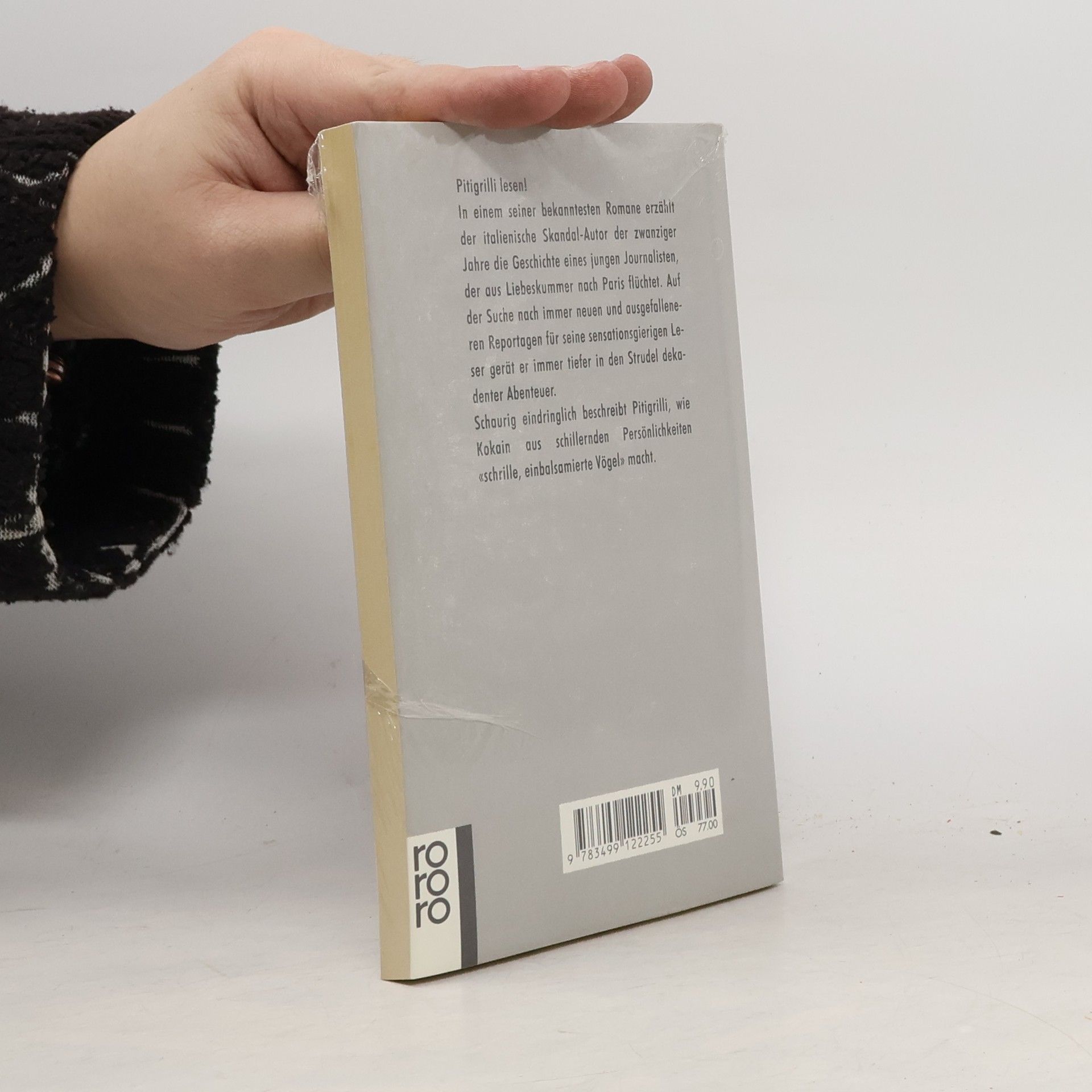 In seinem mehrfach verbotenen Roman erzählt der italienische Skandal-Autor der zwanziger Jahre die Geschichte eines jungen Journalisten, der auf der Suche nach Reportagen für seine sensationsgierigen Leser immer tiefer in den Strudel dekadenter Abenteuer gerät. Schaurig eindringlich beschreibt Pitigrilli, wie Kokain aus schillernden Persönlichkeiten "schrille, einbalsamierte Vögel" macht.