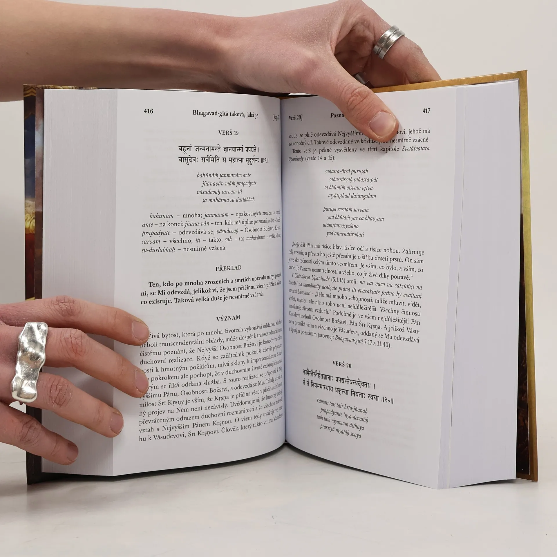 Bhagavad-gítá je známá po celém světě jako drahokam duchovní moudrosti Indie. Verše staré přes 5000 let doplněné komentáři Šríly Prbhupády plně odhalují vědu o seberealizaci a vyjevují tajemství karmy, jógy a reinkarnaci. Předkládá filozofický výklad lidské podstaty.
