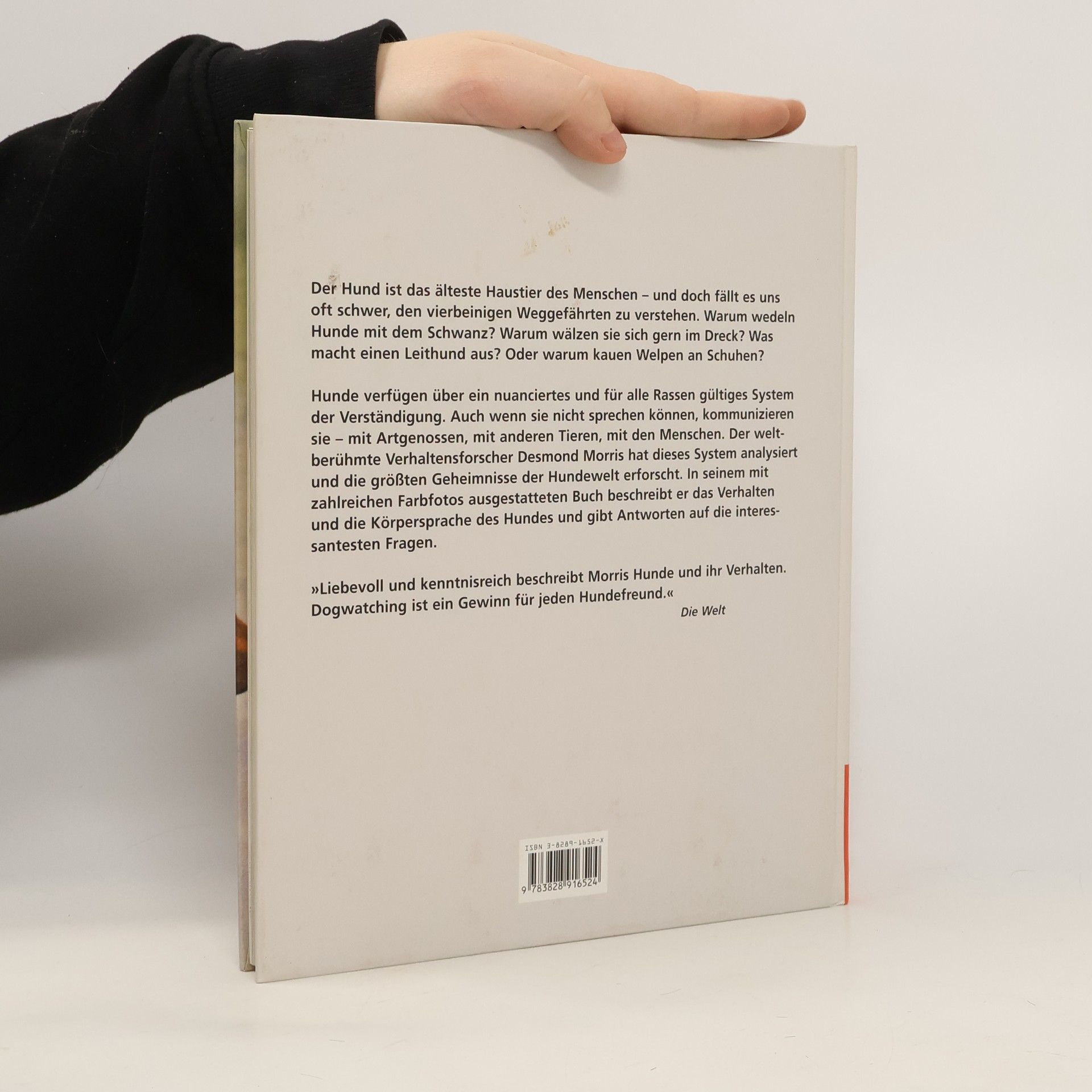 Mit seinen außergewöhnlich schönen Photos und aufschlussreichen Erläuterungen bringt der Bestsellerautor Desmond Morris in gewohnt unterhaltsamer Weise jedem Hundebesitzer seine vierbeinigen Lieblinge noch ein weiteres Stück näher. 'Liebevoll und kenntnisreich beschreibt Morris Hunde und ihr Verhalten. „Dogwatching“ ist ein Gewinn für jeden Hundefreund.' DIE WELT