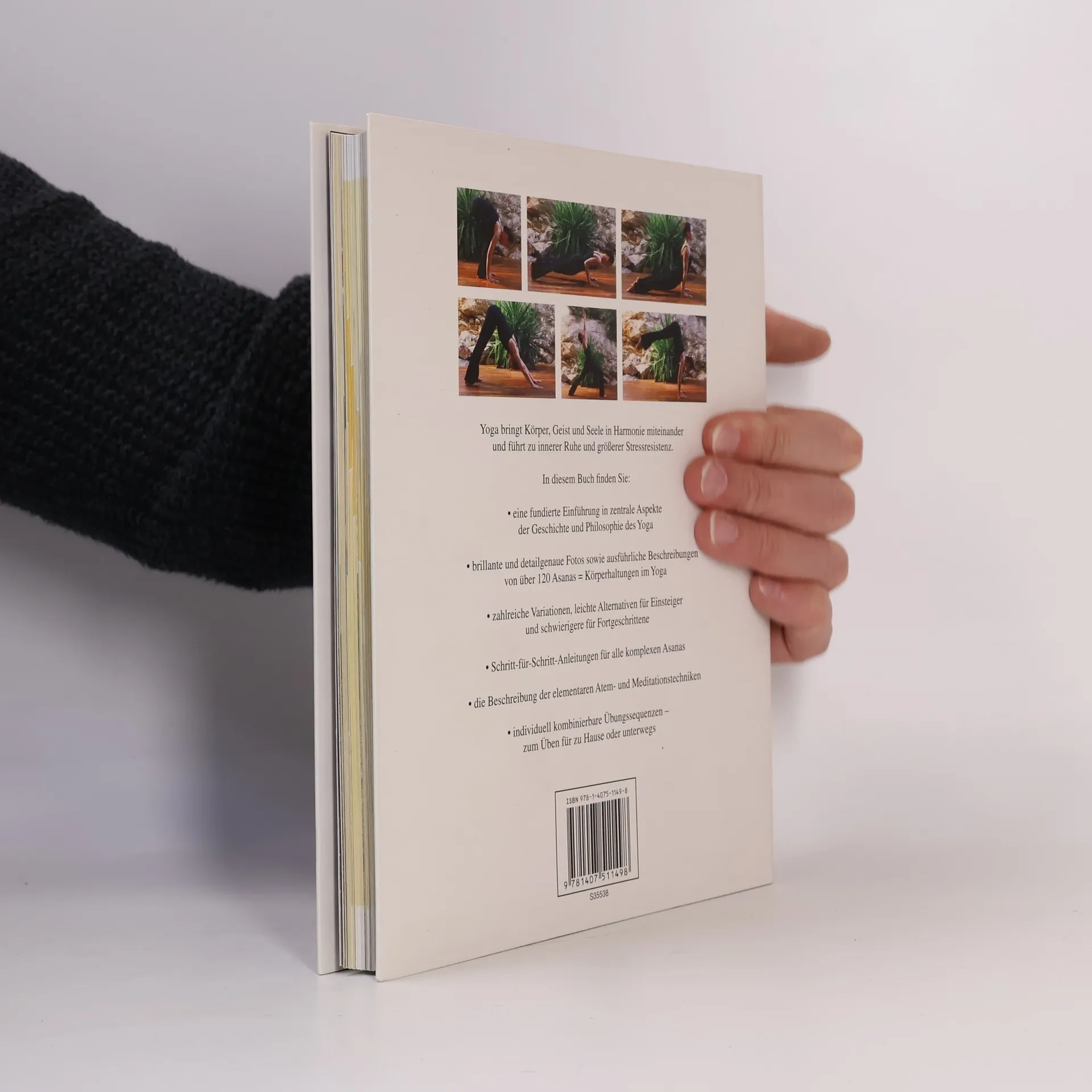 Körper und Geist in Harmonie - Ideal für Einsteiger und Fortgeschrittene - Über 120 Übungen in mehr als 700 Schritt für Schritt Fotografien und ausführlichen Beschreibungen - Zahlreiche Variationen, leichtere Alternativen für Einsteiger und schwierigere Varianten für Fortgeschrittene - Einführung in die elementaren Atem- und Meditationstechniken - Individuell kombinierbare Übungssequenzen - für zu Hause oder unterwegs Yoga bringt Körper, Geist und Seele in Harmonie miteinander und führt zu innerer Ruhe und größerer Stressresistenz. Dieses Buch bietet eine fundierte Einführung in zenrale Aspekte der Geschichte und Philosophie des Yoga. Brillante und detailgenaue Fotos sowie ausführliche Beschreibungen von über 120 Asanas zeigen die genauen Körperhaltungen. Komplexe Asanas werden in Schritt-für-Schritt-Anleitungen detailliert beschrieben. Zahlreiche Variationen, leichte Alternativen für Einsteiger und schwierigere für Fortgeschrittene, sind individuell kombinierbar - ideal für zu Hause und unterwegs.