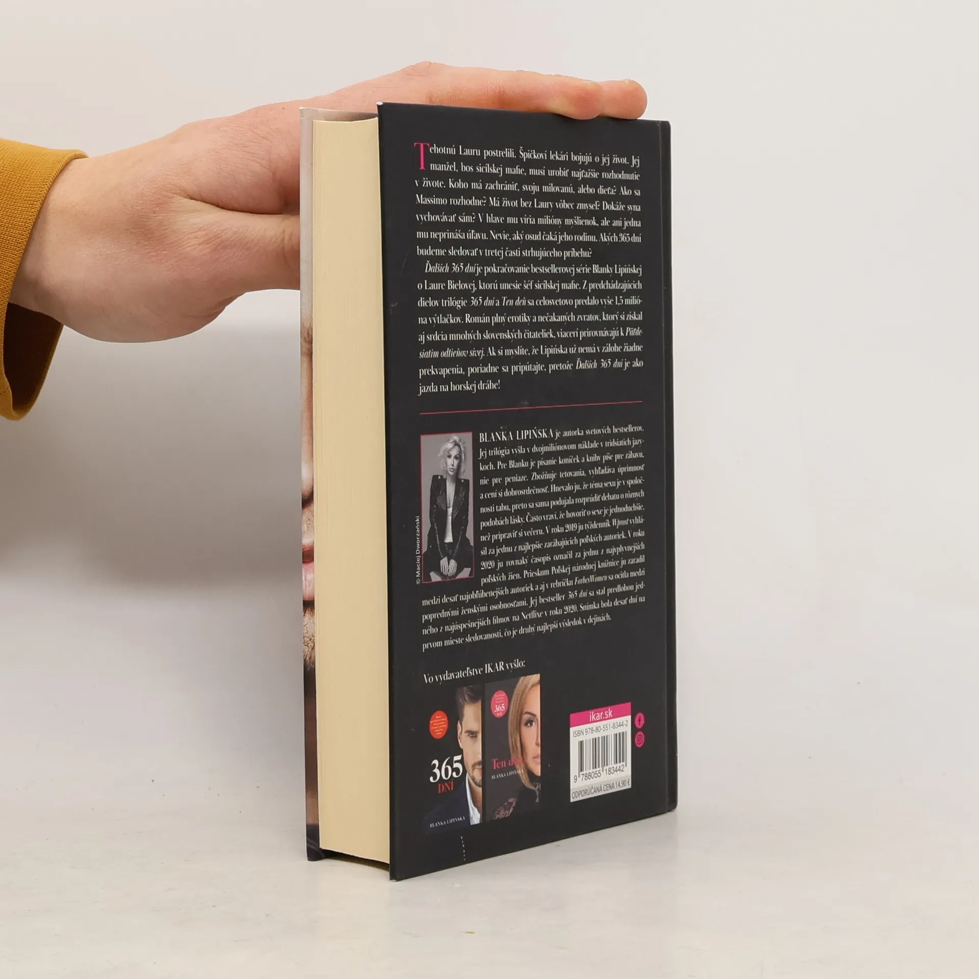 Tehotnú Lauru postrelili. Špičkoví lekári bojujú o jej život. Jej manžel, bos sicílskej mafie, musí urobiť najťažšie rozhodnutie v živote. Koho má zachrániť, svoju milovanú, alebo dieťa? Ako sa Massimo rozhodne? Má život bez Laury vôbec zmysel? Dokáže syna vychovávať sám? V hlave mu víria milióny myšlienok, ale ani jedna mu neprináša úľavu. Nevie, aký osud čaká jeho rodinu. Akých 365 dní budeme sledovať v tretej časti strhujúceho príbehu? Ďalších 365 dní je pokračovanie bestsellerovej série Blanky Lipińskej o Laure Bielovej, ktorú unesie šéf sicílskej mafie. Z predchádzajúcich dielov trilógie 365 dní a Ten deň sa celosvetovo predalo vyše 1,5 milióna výtlačkov. Román plný erotiky a nečakaných zvratov, ktorý si získal aj srdcia mnohých slovenských čitateliek, viacerí prirovnávajú k Päťdesiatim odtieňov sivej. Ak si myslíte, že Lipińska už nemá v zálohe žiadne prekvapenia, poriadne sa pripútajte, pretože Ďalších 365 dní je ako jazda na horskej dráhe!