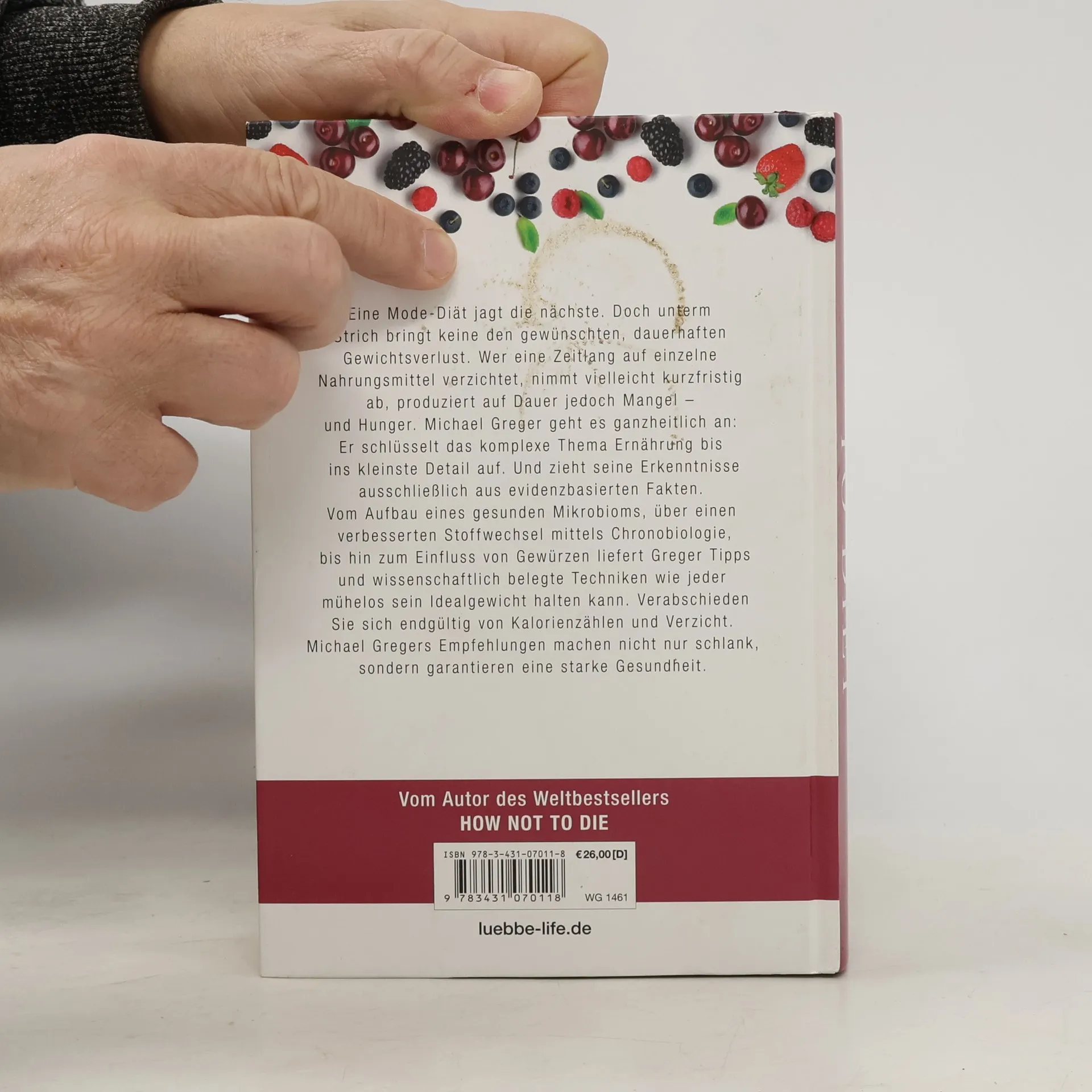 Eine Mode-Diät jagt die nächste. Doch unterm Strich bringt keine den gewünschten, dauerhaften Gewichtsverlust. Wer eine Zeitlang auf einzelne Nahrungsmittel verzichtet, nimmt vielleicht kurzfristig ab, produziert auf Dauer jedoch Mangel - und Hunger. Michael Greger geht es ganzheitlich an: Er schlüsselt das komplexe Thema Ernährung bis ins kleinste Detail auf. Und zieht seine Erkenntnisse aus schließlich aus evidenzbasierten Fakten. Vom Aufbau eines gesunden Mikrobioms, über einen verbesserten Stoffwechsel mittels Chronobiologie, bis hin zum Einfluss von Gewürzen liefert Greger Tipps und wissenschaftlich belegte Techniken wie jeder mühelos sein Idealgewicht halten kann. Verabschieden Sie sich endgültig von Kalorienzählen und Verzicht. Michael Gregers Empfehlungen machen nicht nur schlank, sondern garantieren eine starke Gesundheit. Mit 21 ultimativen Abnehmboostern zur Beschleunigung der Fettverbrennung