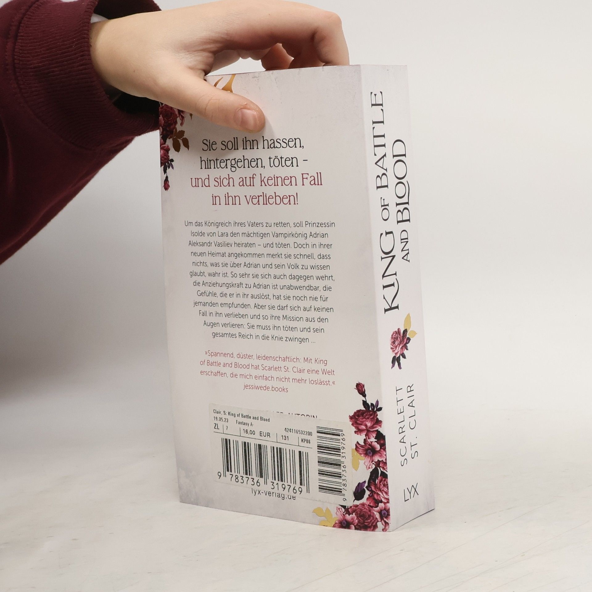 Sie soll ihn hassen, hintergehen, töten - und sich auf keinen Fall in ihn verlieben! Um das Königreich ihres Vaters zu retten, soll Prinzessin Isolde von Lara den mächtigen Vampirkönig Adrian Aleksandr Vasiliev heiraten - und töten. Doch in ihrer neuen Heimat angekommen merkt sie schnell, dass nichts, was sie über Adrian und sein Volk zu wissen glaubt, wahr ist. So sehr sie sich auch dagegen wehrt, die Anziehungskraft zu Adrian ist unabwendbar, die Gefühle, die er in ihr auslöst, hat sie noch nie für jemanden empfunden. Aber sie darf sich auf keinen Fall in ihn verlieben und so ihre Mission aus den Augen verlieren: Sie muss ihn töten und sein gesamtes Reich in die Knie zwingen ... »Spannend, düster, leidenschaftlich: Mit KING OF BATTLE AND BLOOD hat Scarlett St. Clair eine Welt erschaffen, die mich einfach nicht mehr loslässt.« JESSIWEDE. BOOKS Der Auftakt der fesselnden KING-OF-BATTLE-AND-BLOOD-Trilogie von Bestseller-Autorin Scarlett St. Clair Dieses Buch gibt es in zwei Versionen: mit und ohne Farbschnitt. Sobald die Farbschnitt-Ausgabe ausverkauft ist, liefern wir die Ausgabe ohne Farbschnitt aus