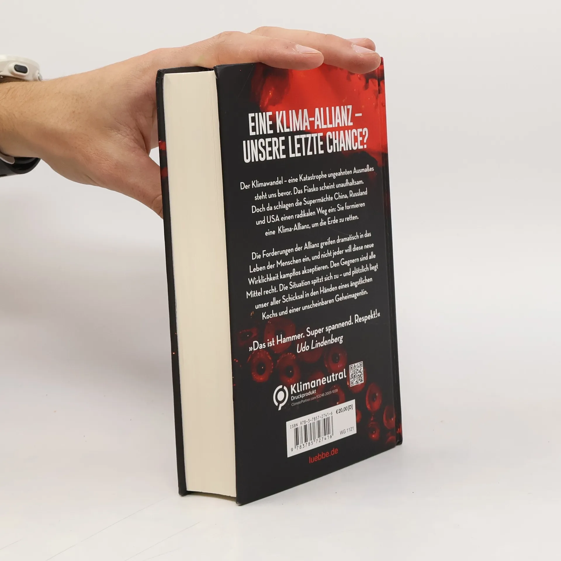 Eine Klima-Allianz - unsere letzte Chance? Der Klimawandel - eine Katastrophe ungeahnten Ausmaßes steht uns bevor. Verändert unsere Erde. Verändert unser aller Leben. Das Fiasko scheint unaufhaltsam. Bis die drei Supermächte China, Russland und die USA einen radikalen Weg einschlagen. Doch wird diese starke Klima-Allianz das Ruder noch herumreißen? Die Maßnahmen der Allianz greifen gravierend in das Leben der Menschen ein, und nicht jeder will diese neue Wirklichkeit kampflos akzeptieren. Alle Mittel sind den Gegnern recht, um ihre ökonomischen und machtpolitischen Interessen zu verteidigen. Die Situation spitzt sich dramatisch zu, und plötzlich liegt das Schicksal der Erde in den Händen eines schüchternen Kochs und einer unscheinbaren Geheimagentin. „Das ist Hammer. Super spannend. Respekt!“ Udo Lindenberg