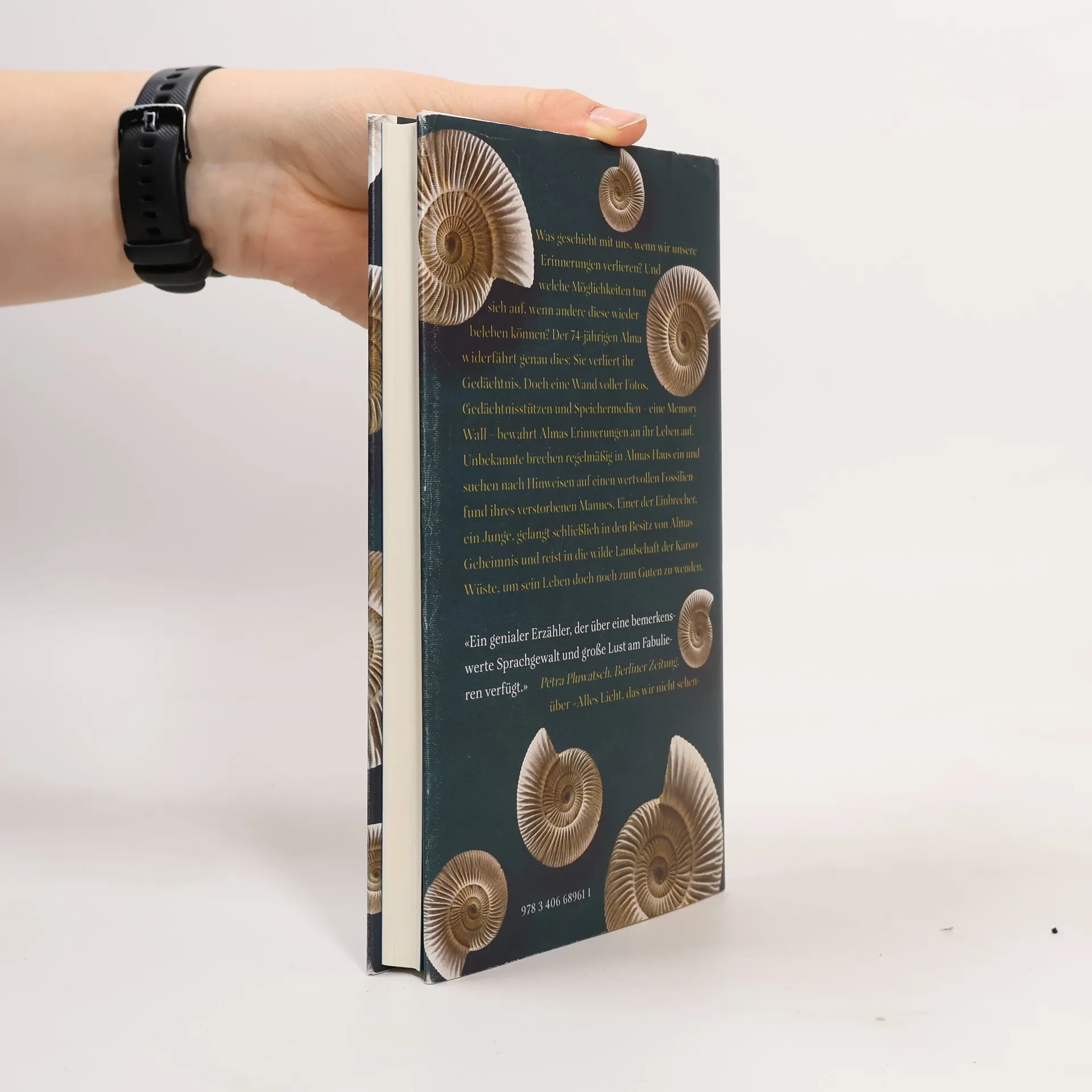 Unser Leben, unsere Welt werden durch unsere Erinnerungen zusammengehalten. Was geschieht mit uns, wenn wir sie verlieren, und welche Möglichkeiten tun sich auf, wenn andere unsere Erinnerungen wiederbeleben können? Der 74-jährigen Alma Konachek, die in einem Vorort von Kapstadt lebt, widerfährt genau dies. Sie verliert ihr Gedächtnis. Unbekannte brechen mehrfach in ihr Haus ein, auf der Suche nach Hinweisen zu einem spektakulären Fossilienfund ihres plötzlich verstorbenen Mannes. Denn Alma hat eine Wand voller Fotos, Gedächtnisstützen, Speichermedien, in der sich irgendwo der fehlende Hinweis zu dem gesuchten Fossil befindet. In dieser lichten, wunderschönen Novelle gelangt schließlich ein Junge in den Besitz des Geheimnisses dieser alten Frau und ihres Mannes, einer Episode aus ihrer Vergangenheit mit der Macht, ein Leben zum Guten zu wenden. Der Junge reist dazu in die Karoo-Wüste und setzt sich dieser wilden Landschaft aus. Wie alle Werke Doerrs zeugt auch dieses von der Größe des Lebens – von der geheimnisvollen Schönheit der Fossilien, Wolken, Blätter – vom atemberaubenden Glück, in diesem Universum zu leben. Die Vorstellungskraft und Sprachmacht, das Einfühlungsvermögen und die Erzählkunst Anthony Doerrs sind unvergleichlich.