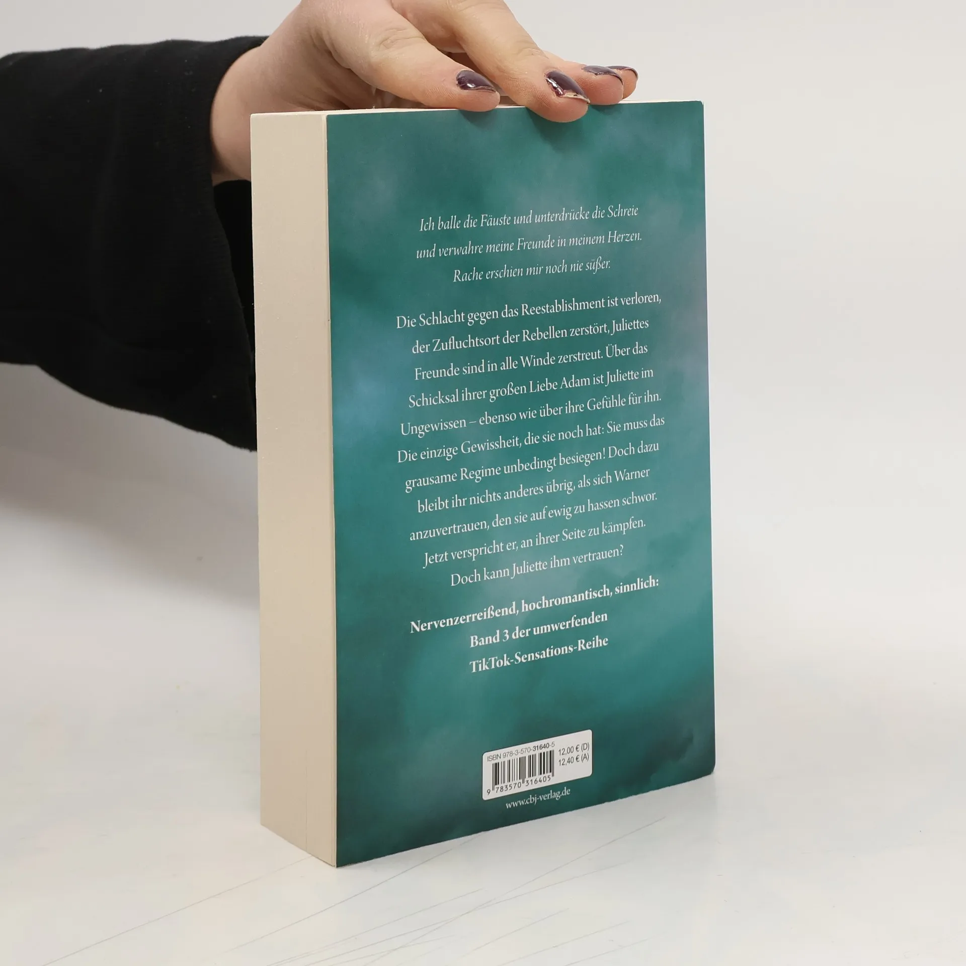 Die Schlacht gegen das Reestablishment ist verloren, der Zufluchtsort der Rebellen zerstört, Juliettes Freunde sind in alle Winde zerstreut. Über das Schicksal ihrer großen Liebe Adam ist Juliette im Ungewissen –– ebenso wie über ihre Gefühle für ihn. Die einzige Gewissheit, die sie noch hat: Sie muss das grausame Regime unbedingt besiegen! Doch dazu bleibt ihr nichts anderes übrig, als sich Warner anzuvertrauen, dem einen Menschen, den sie auf ewig zu hassen schwor. Und der ihr das Leben rettete. Jetzt verspricht er, an ihrer Seite zu kämpfen. Doch kann Juliette ihm vertrauen? Und was will er wirklich von ihr? Die TikTok Sensation – Mitreißende Young Adult Romantasy-Reihe mit Suchtfaktor für alle Fans von Leigh Bardugo, Sarah J. Maas und Victoria Aveyard. Dieses Buch ist bereits unter dem Titel „Ich brenne für dich“ erschienen.