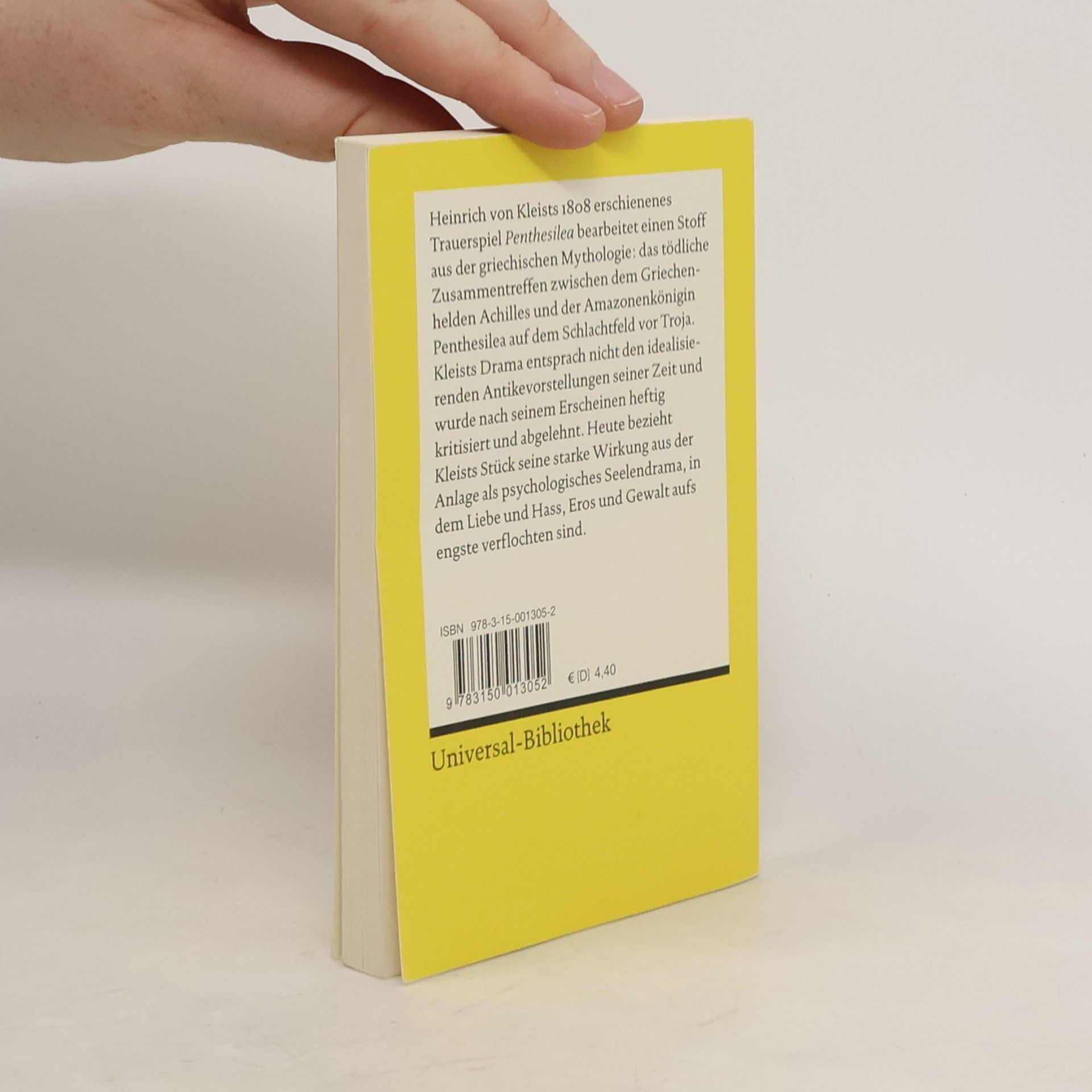 Heinrich von Kleists 1808 erschienenes Trauerspiel 'Penthesilea' bearbeitet einen Stoff aus der griechischen Mythologie: das tödliche Zusammentreffen zwischen dem Griechenhelden Achilles und der Amazonenkönigin Penthesilea auf dem Schlachtfeld vor Troja. Kleists grausames Drama bildet ein Gegengewicht zu den idealisierenden Antikevorstellungen seiner Zeit und wurde nach seinem Erscheinen heftig kritisiert und abgelehnt. Mit seinen 24 Auftritten von unterschiedlicher Länge und ohne Akteinteilung folgt Kleists Trauerspiel weder antiken noch zeitgenössischen Vorbildern; zudem nimmt die „verdeckte Handlung“, die über Boten oder Beobachter mitgeteilt wird, einen wesentlich größeren Raum ein als die direkte Handlung. Bis heute bezieht Kleists 'Penthesilea' seine Wirkung aus der Anlage als psychologisches Seelendrama, in der Liebe und Hass, Erotik und Aggression aufs Engste verflochten sind. Text in neuer Rechtschreibung. - Mit Anmerkungen von Hedwig Appelt und Maximilian Nutz.