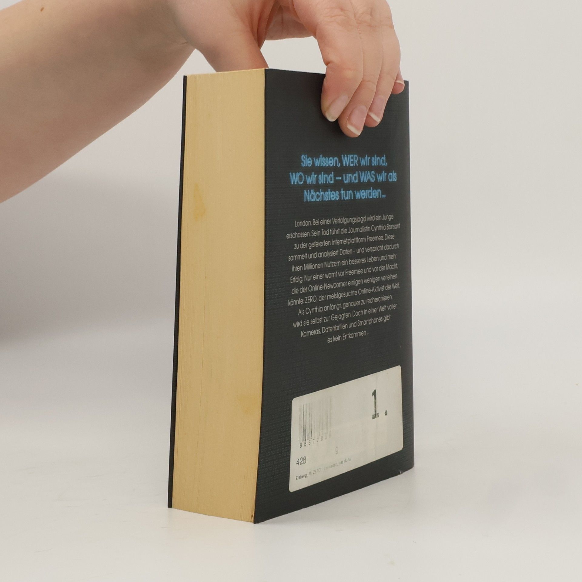 Wer sich im Netz bewegt, für den gibt es kein Entkommen. London. Bei einer Verfolgungsjagd wird ein Junge erschossen. Sein Tod führt die Journalistin Cynthia Bonsant zu der gefeierten Internetplattform Freemee. Diese sammelt und analysiert Daten – und verspricht dadurch ihren Millionen Nutzern ein besseres Leben und mehr Erfolg. Nur einer warnt vor Freemee und vor der Macht, die der Online-Newcomer einigen wenigen verleihen könnte: ZERO, der meistgesuchte Online-Aktivist der Welt. Als Cynthia anfängt, genauer zu recherchieren, wird sie selbst zur Gejagten. Doch in einer Welt voller Kameras, Datenbrillen und Smartphones kann man sich nicht verstecken …